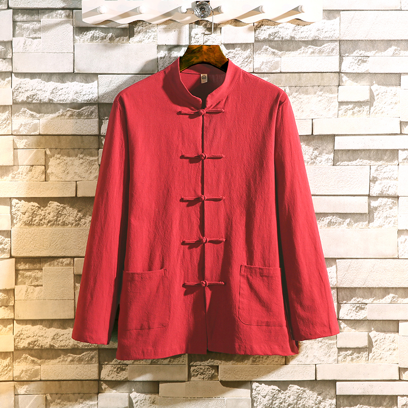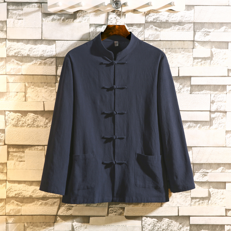 棉麻唐装男新中式国风男装亚麻衬衫复古盘扣上衣男士汉服长袖衬衣