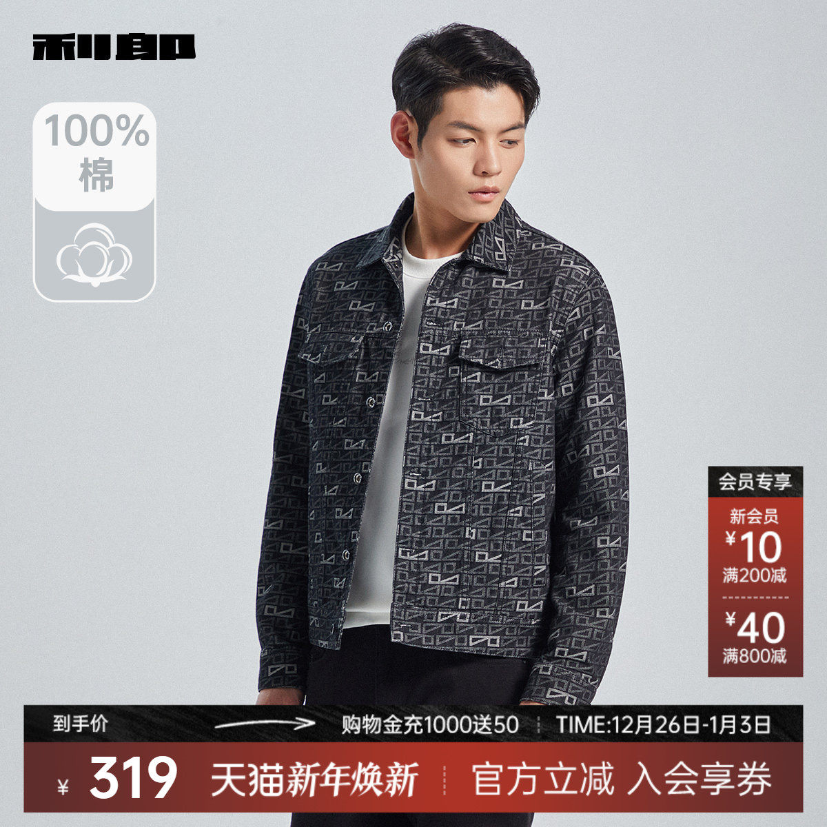 【牛仔外套】利郎官方茄克男春秋季商务休闲字母提花纯棉男士夹克
