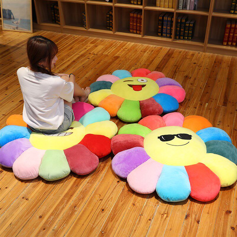 大号七彩太阳花坐垫笑脸花向日葵靠枕办公室椅垫毛绒抱枕靠垫地垫