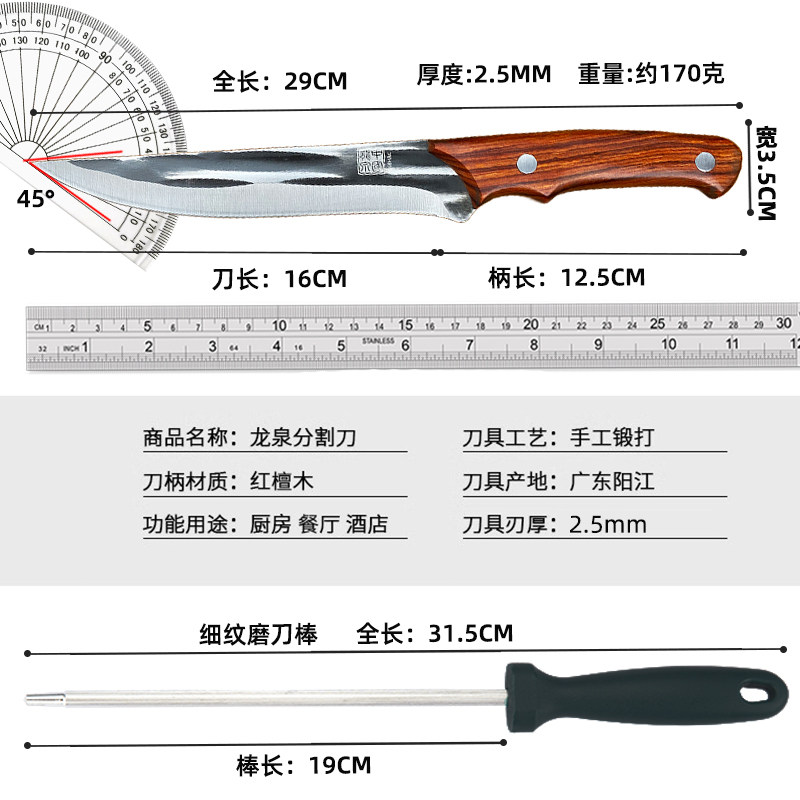 锤纹锻打切肉刀家用剔骨分割肉刀吃羊排牛排餐刀厨房切水果蔬刀具