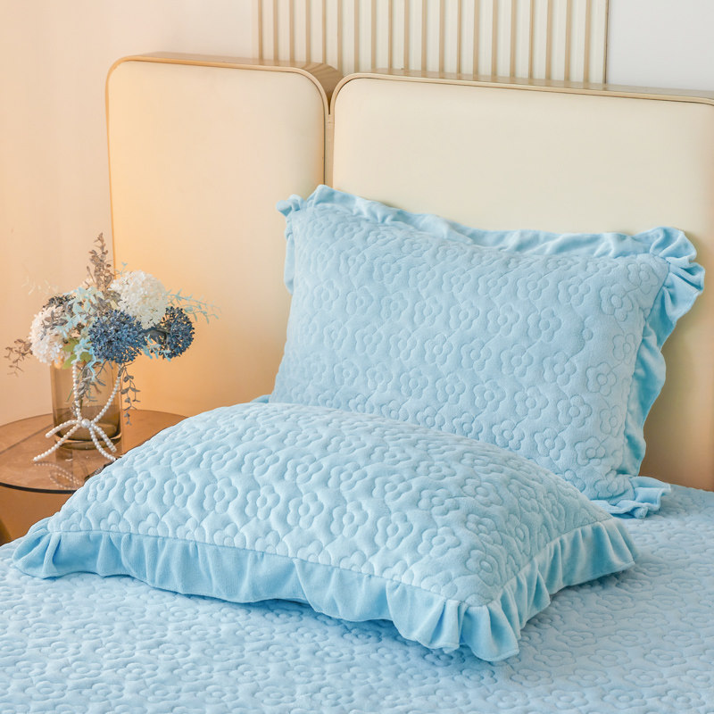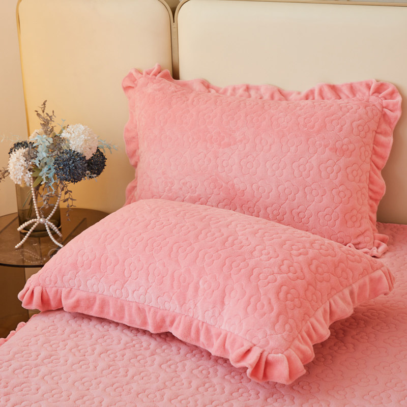 纯色花边牛奶绒加厚夹棉加绒枕套一对装单人48×74cm枕头芯内胆套