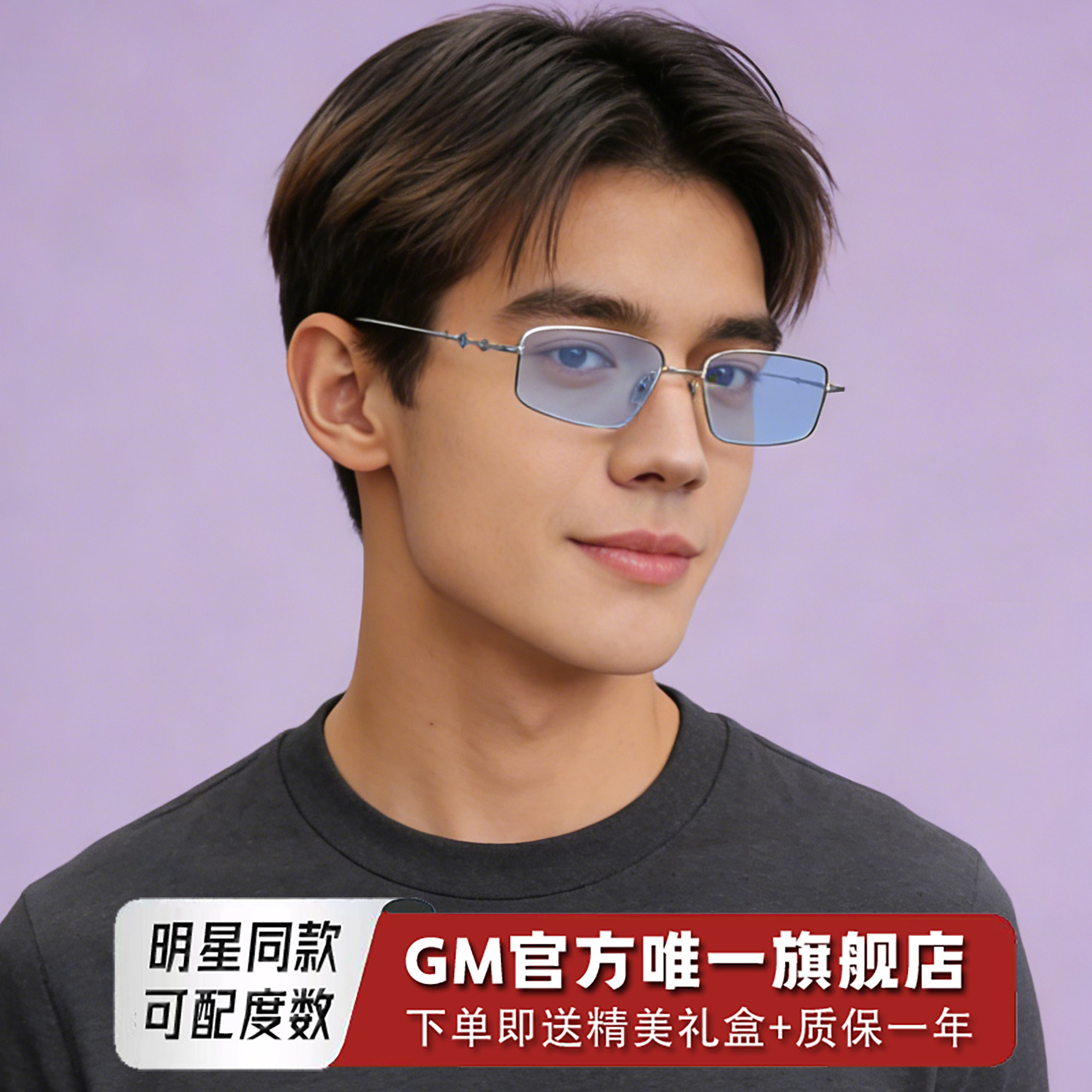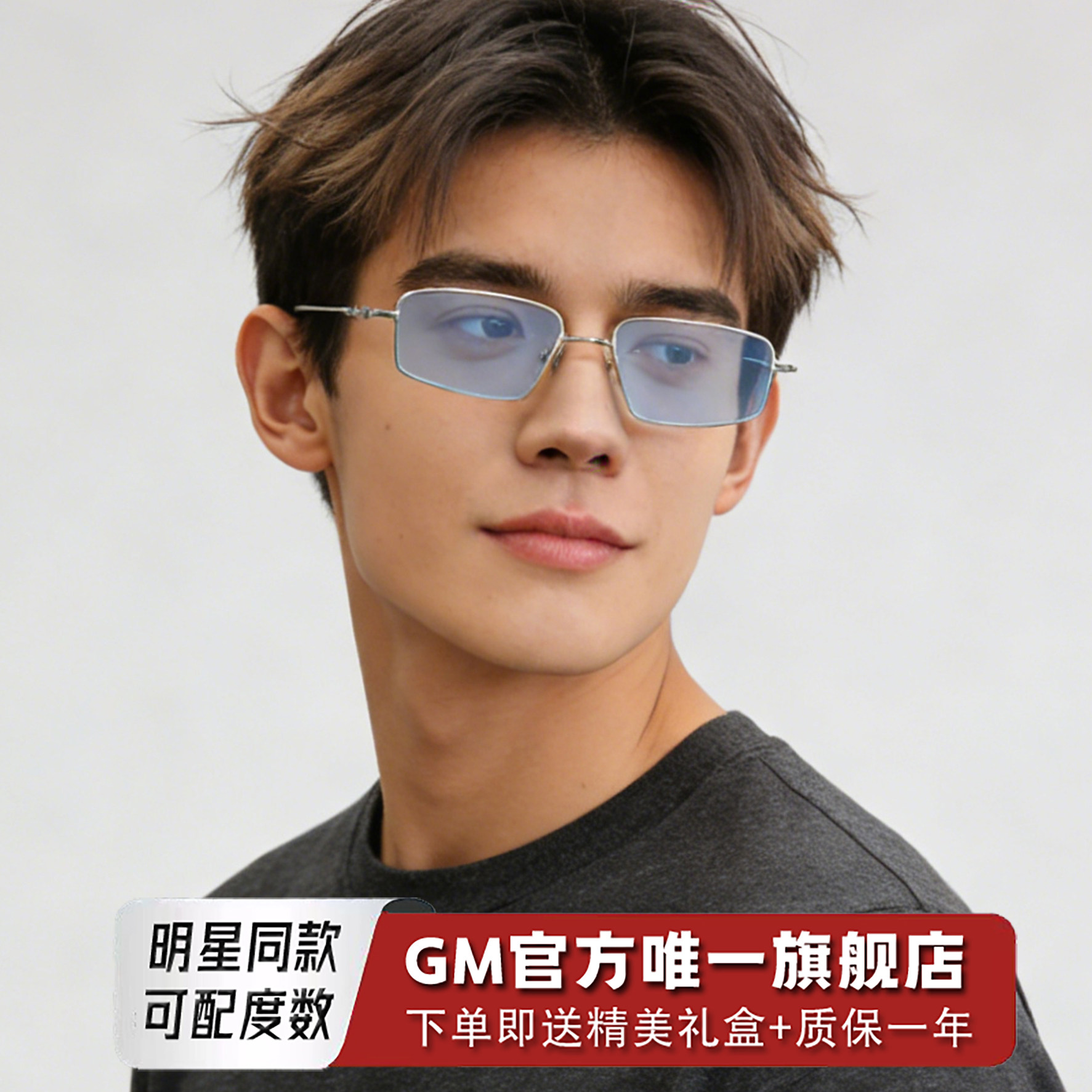 GM墨镜浅蓝片太阳镜男女明星同款素颜平光镜近视可带度数眼镜ATOC