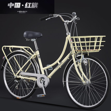 红旗女款通勤自行车24寸超轻便捷代步上班成人男女式变速学生单车