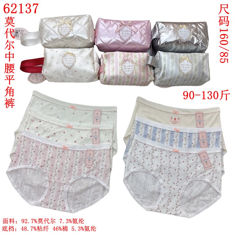 秘语女士内裤六条装舒适莫代尔印花透气女士简约中腰平角裤多款式