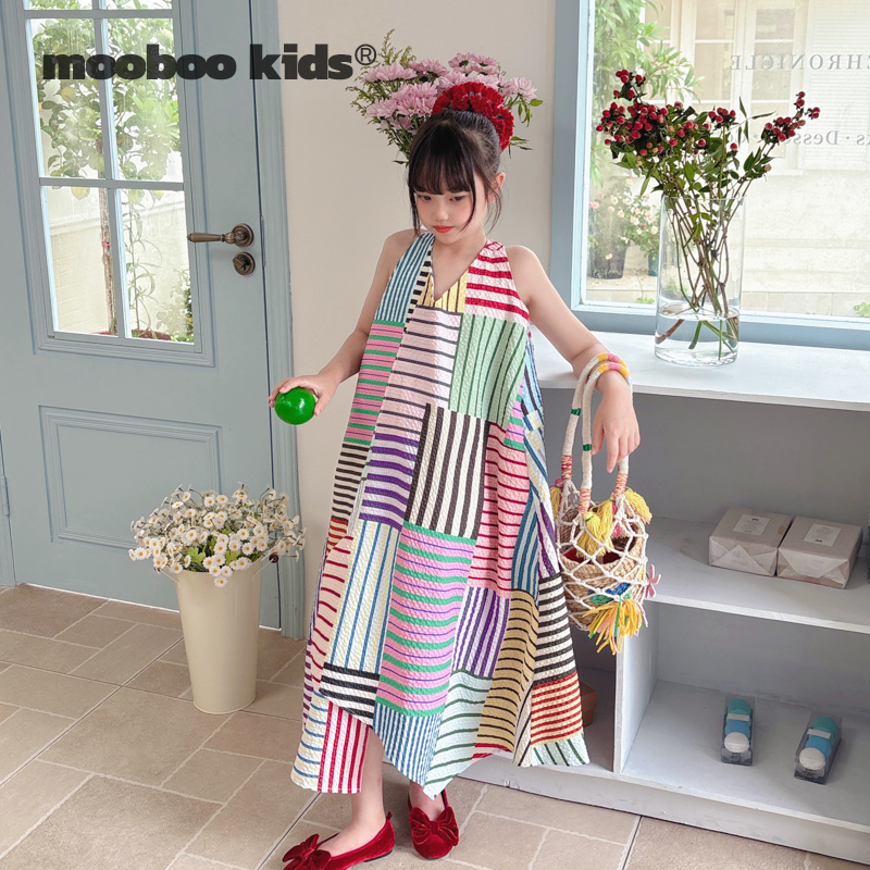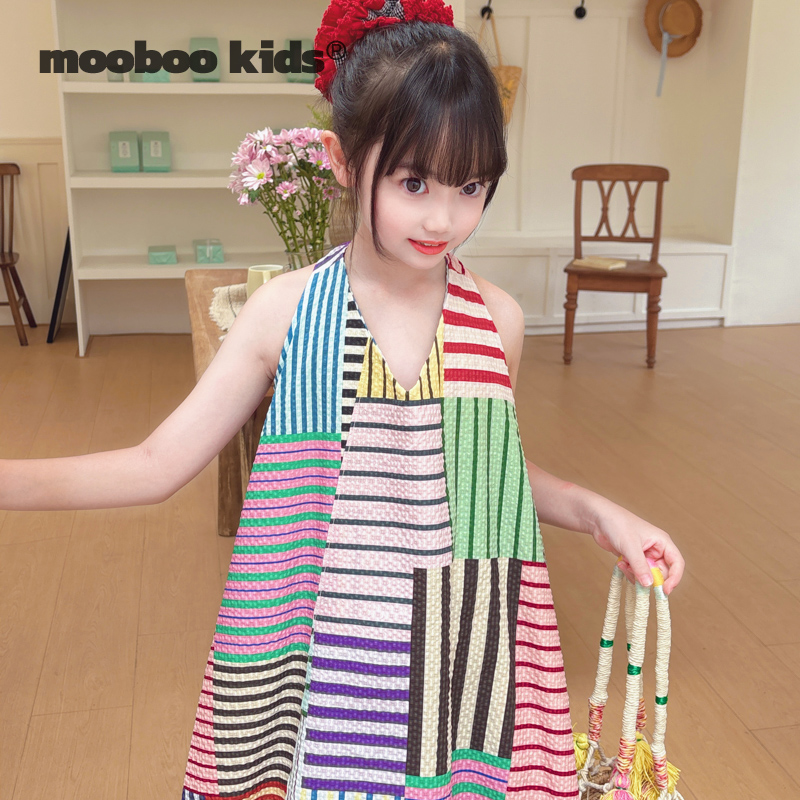墨宝童装 MoobooKids_大色块肌理感条纹花背心长裙