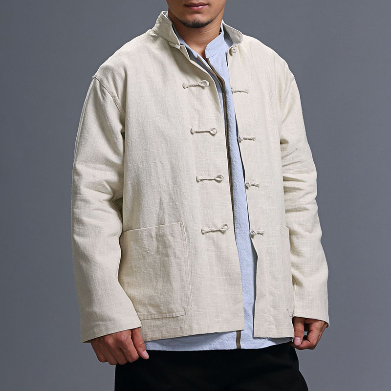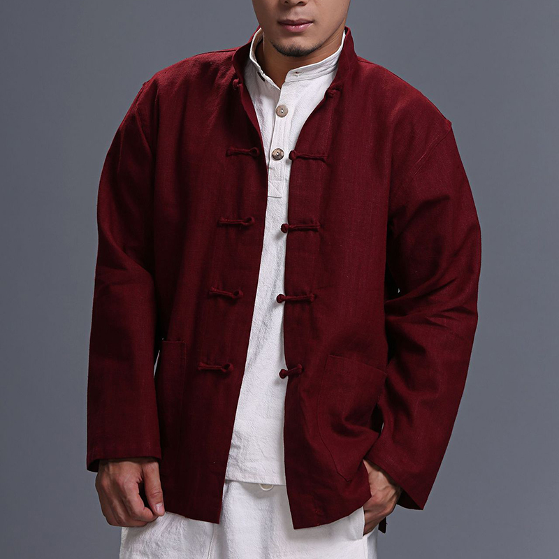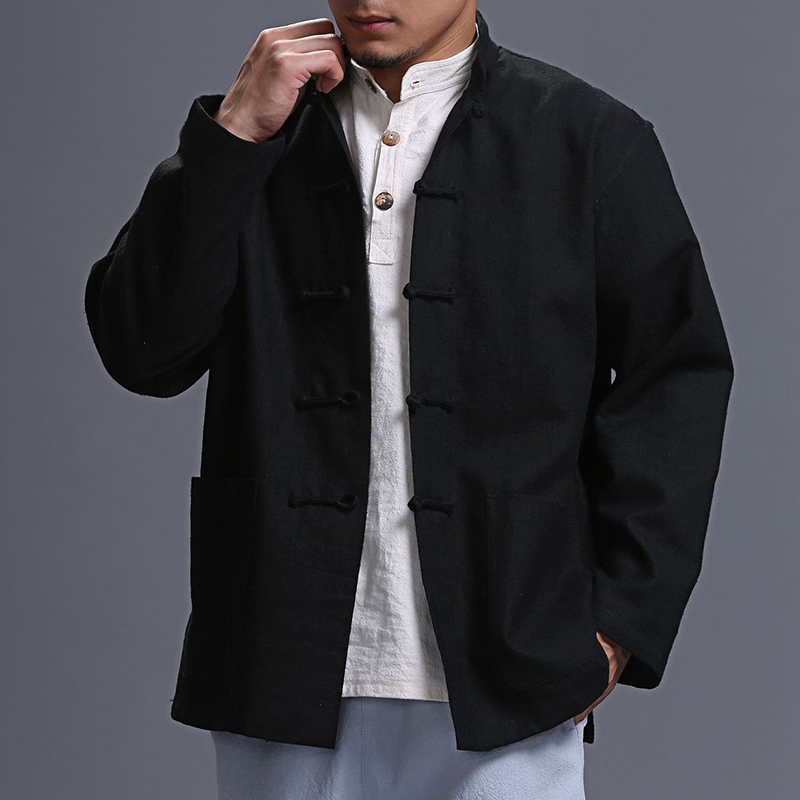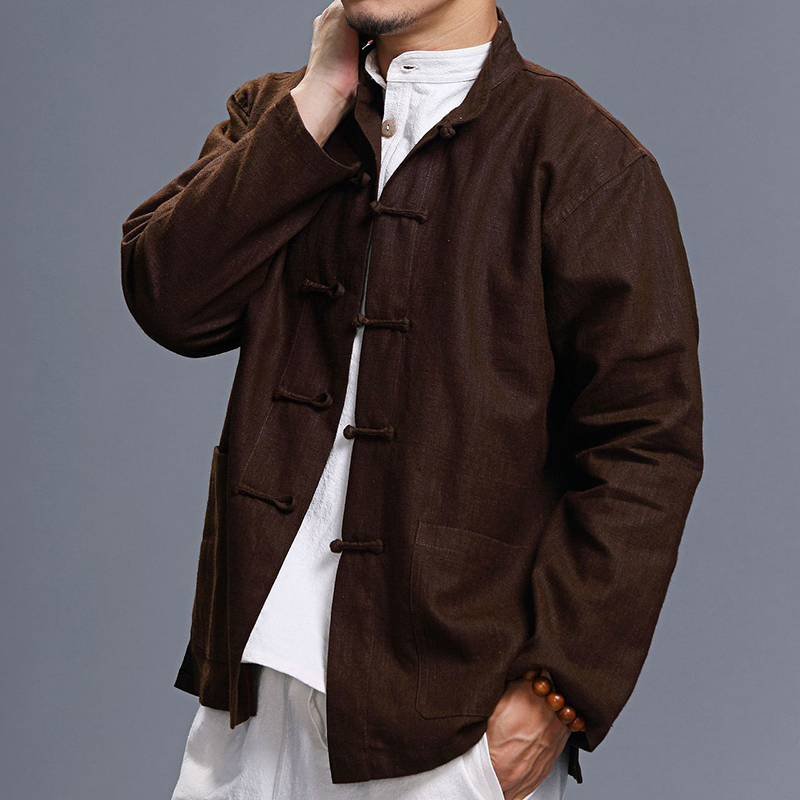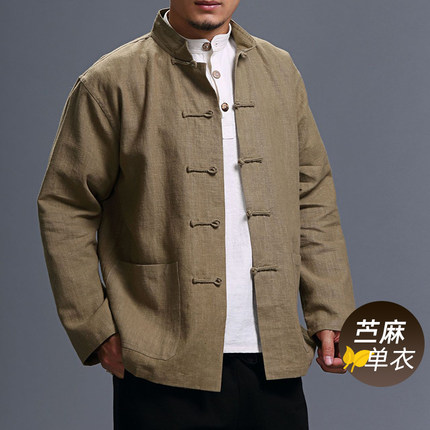 禅意衣服男中式复古盘扣单衣外套中国风唐装苎麻上衣春秋棉麻衬衫