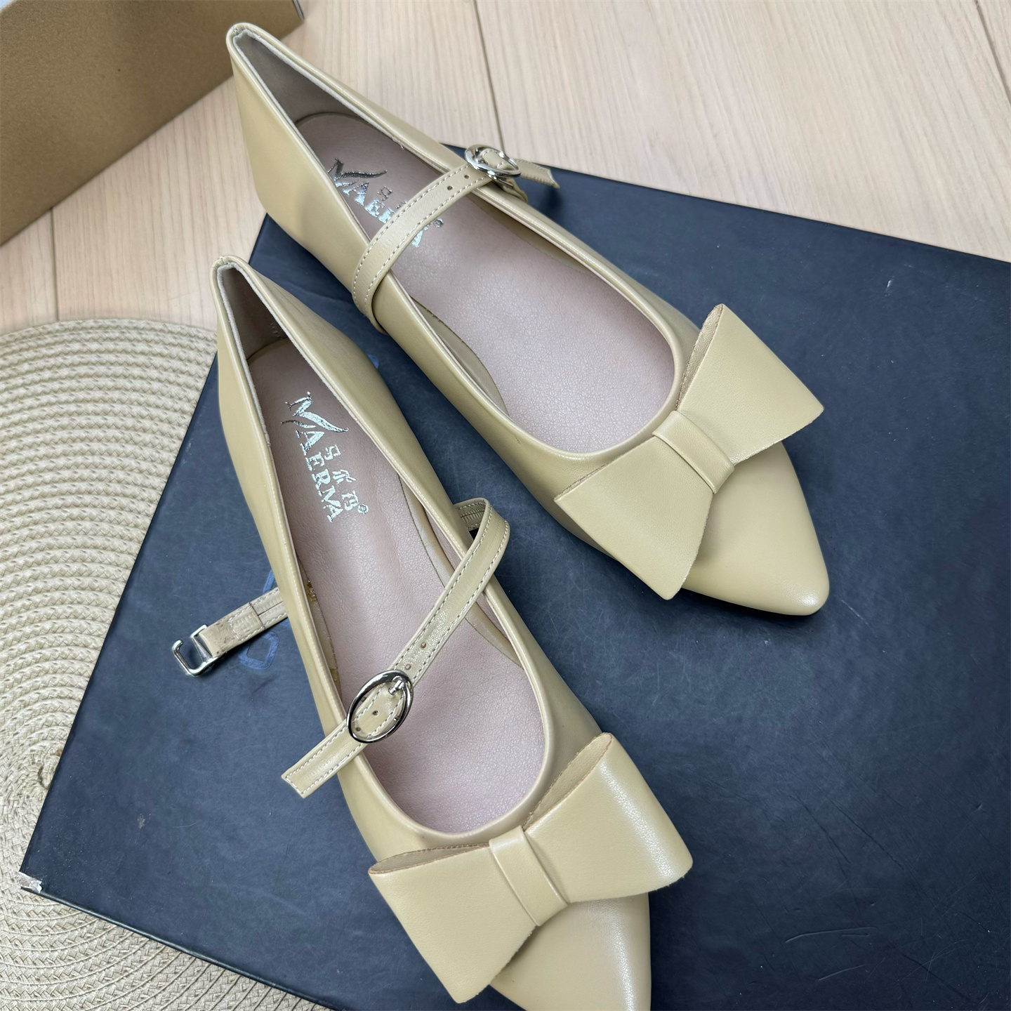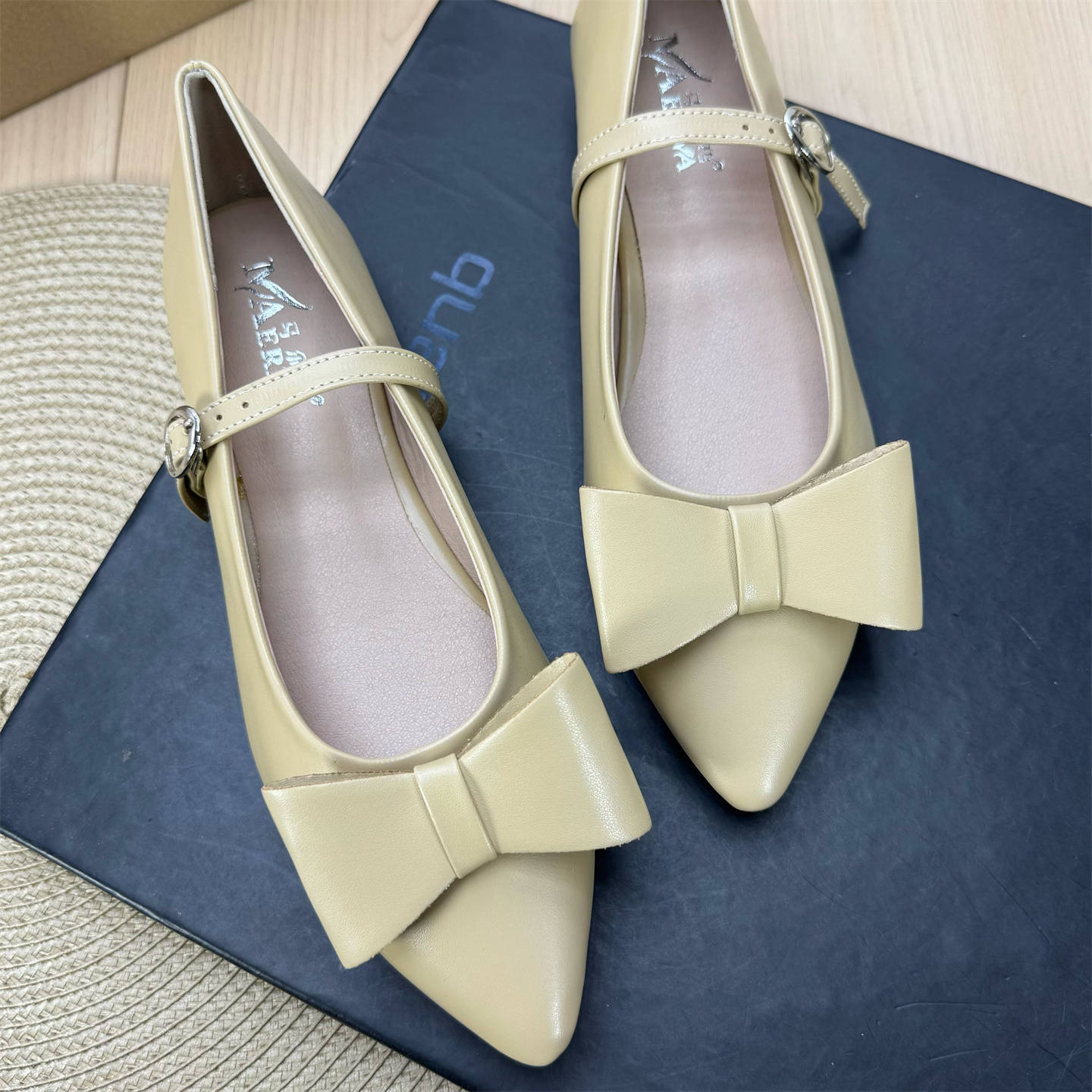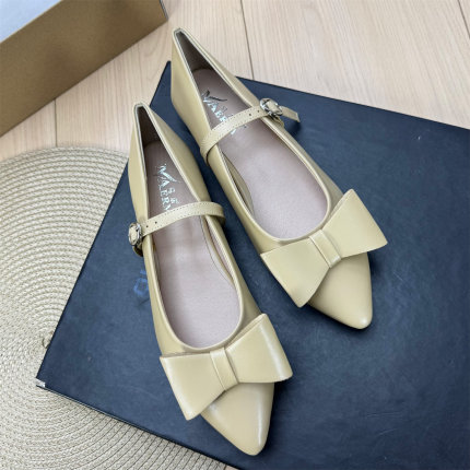 尖头浅口蝴蝶结一字带平底鞋女