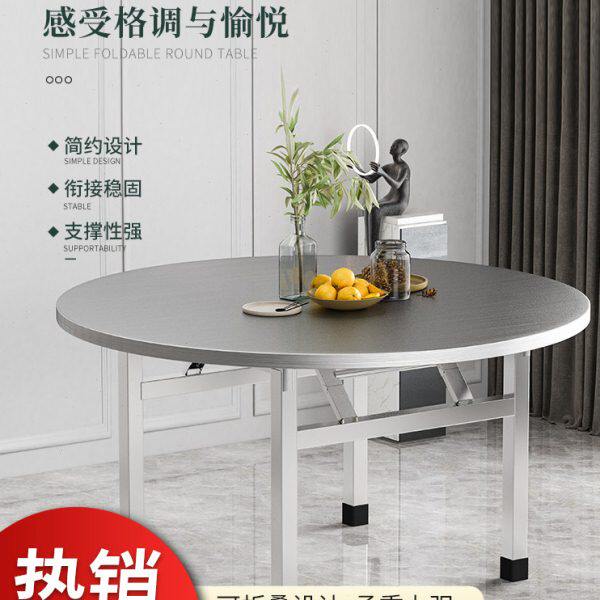 304不锈钢折叠桌子 圆形烧烤摆摊大排档大圆桌转盘食堂餐桌家商