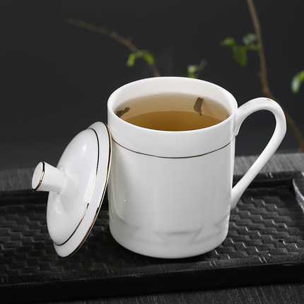 陶瓷带盖茶杯骨瓷水杯办公杯景德镇瓷器杯子家用大水杯定制会议杯