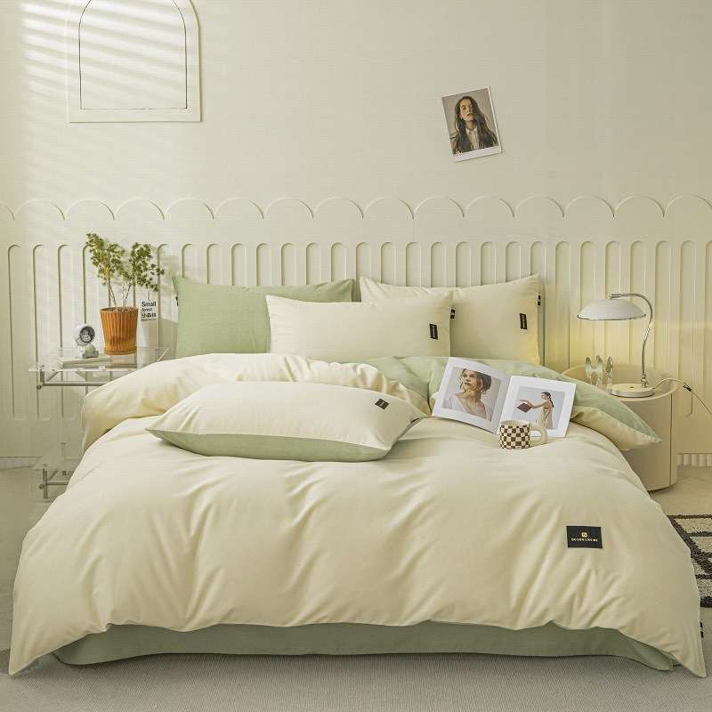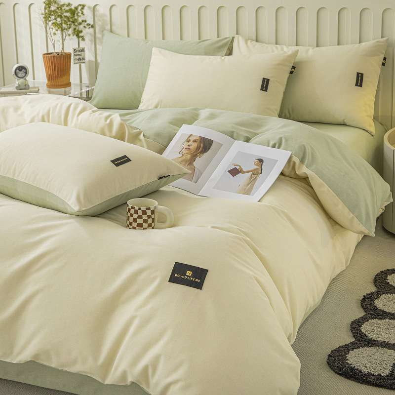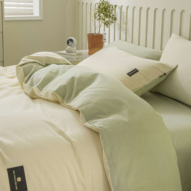 磨毛四件套日式色织床单被罩纯色被套南通床上三件套床品 床笠