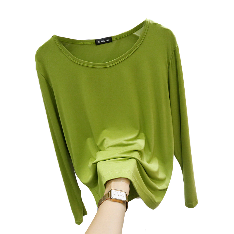 莫代尔长袖圆领打底衫女早秋内搭纯色T恤宽松大码休闲外穿薄上衣