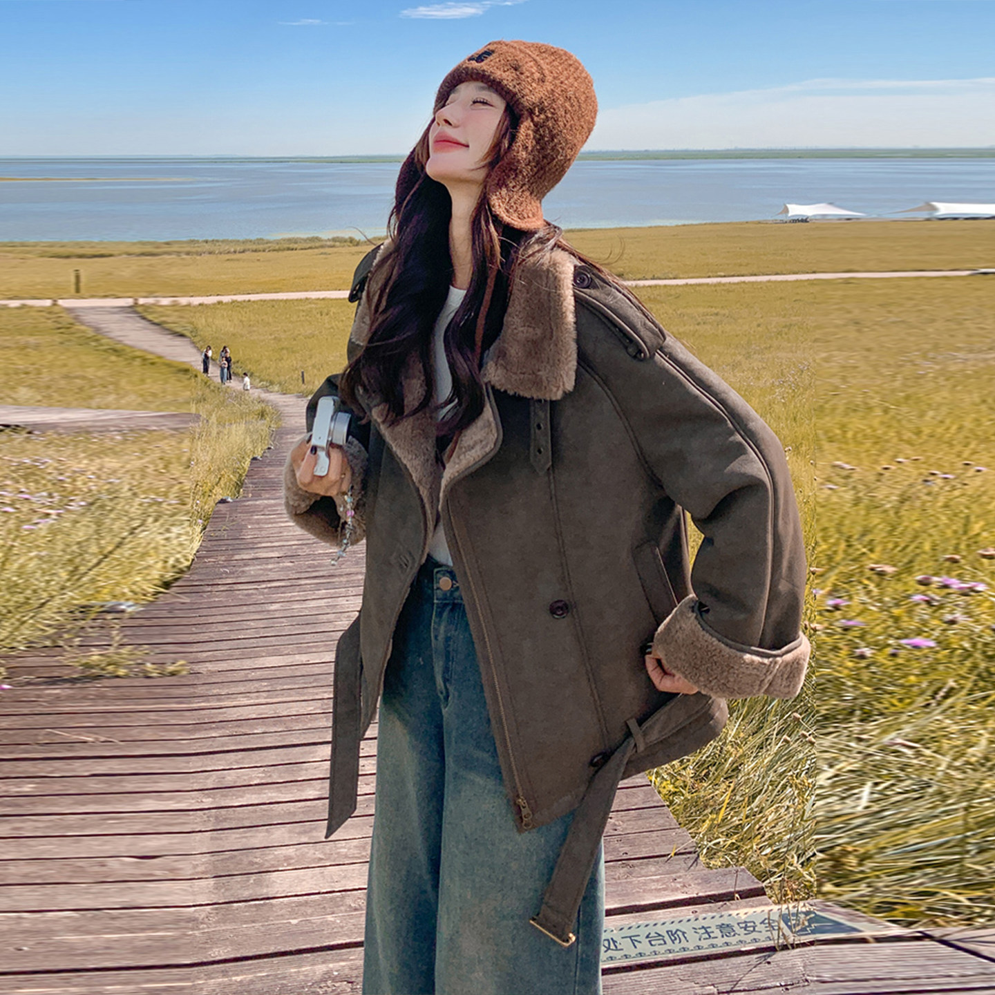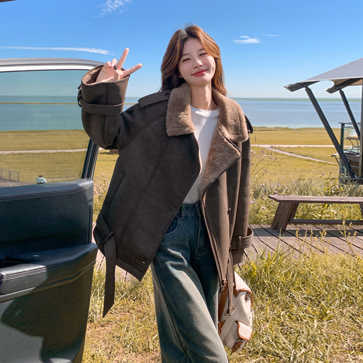 大码女装美拉德穿搭翻领加厚羊羔毛外套女胖mm复古学院风保暖棉服
