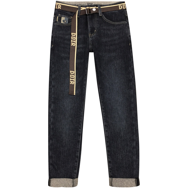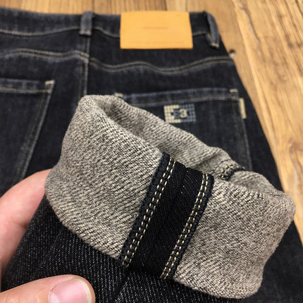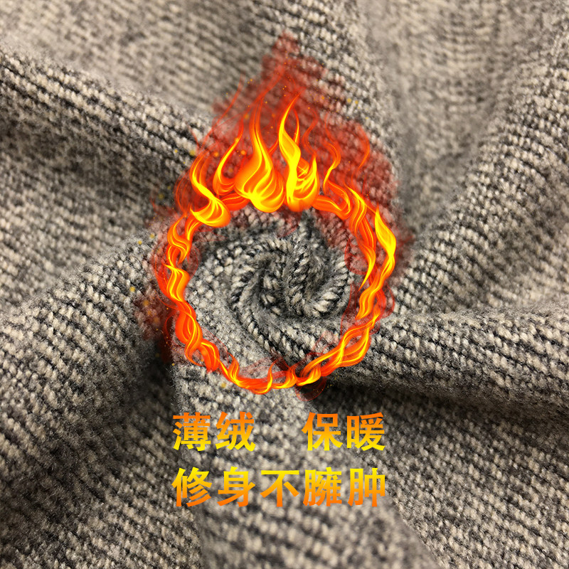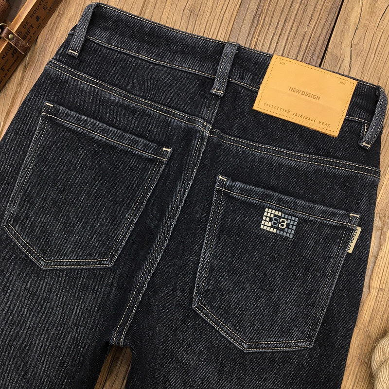 高端黑色磨毛牛仔裤男士冬季保暖厚款弹力修身小脚加绒长裤古士狼