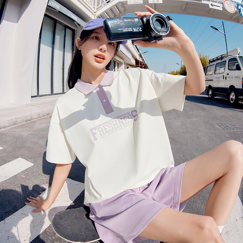361POLO衫女2024夏季新款宽松休闲翻领短袖女士透气轻薄运动T恤