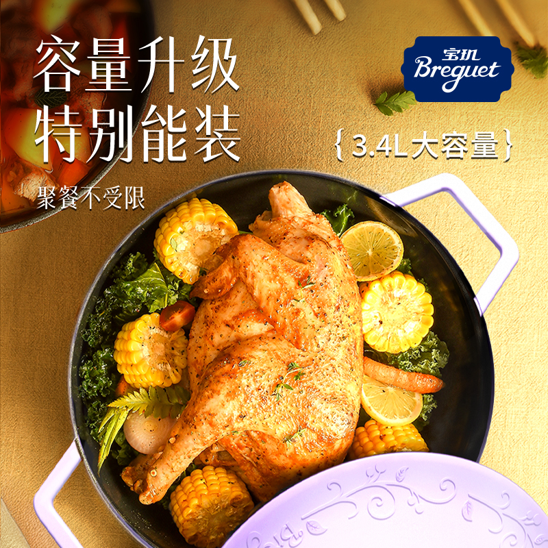 Breguet宝玑珐琅海鲜锅平底铸铁锅3.4L结婚乔迁礼物多功能炖汤锅