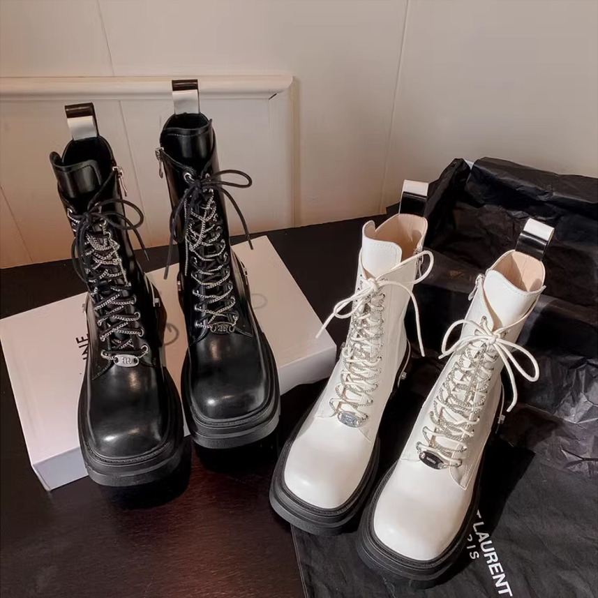 马丁绑带粗高跟厚底圆头机车秋冬