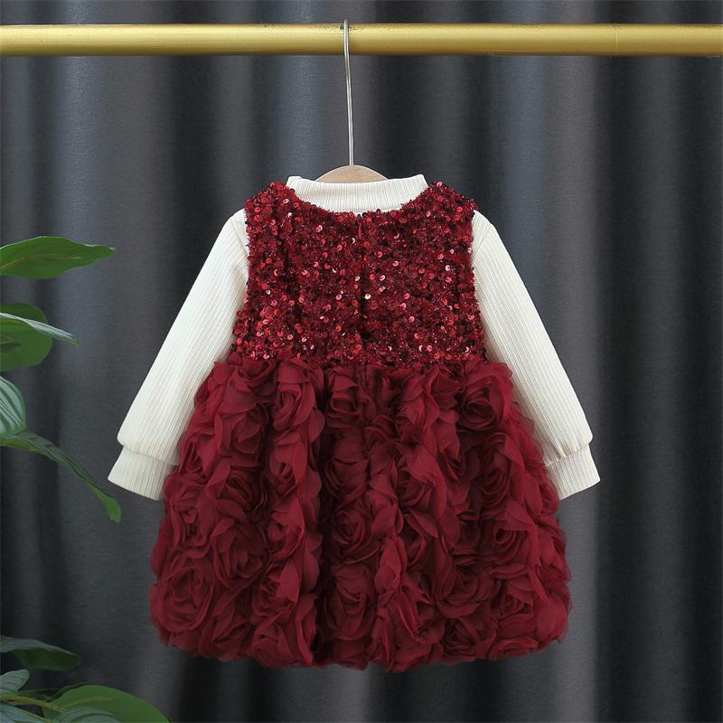 女童秋冬款加绒连衣裙2024新款一周岁婴儿宝宝礼服两件套抓周套裙