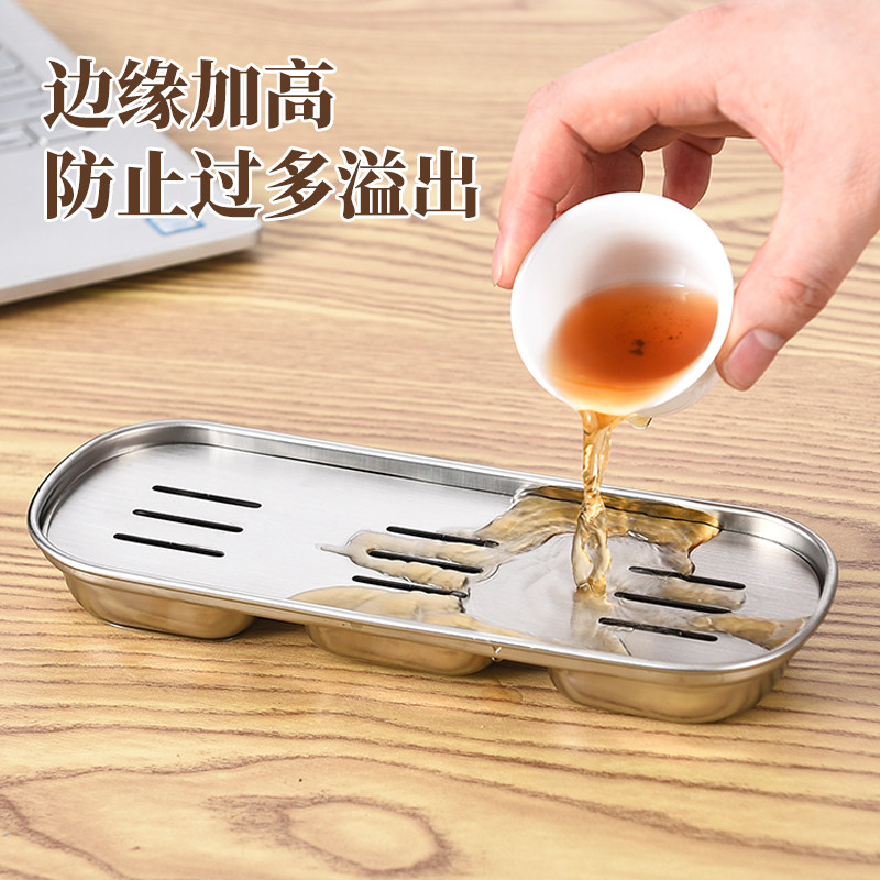 一壶两杯不锈钢小茶盘便携户外阳台长方形沥水盘办公工位单人壶承