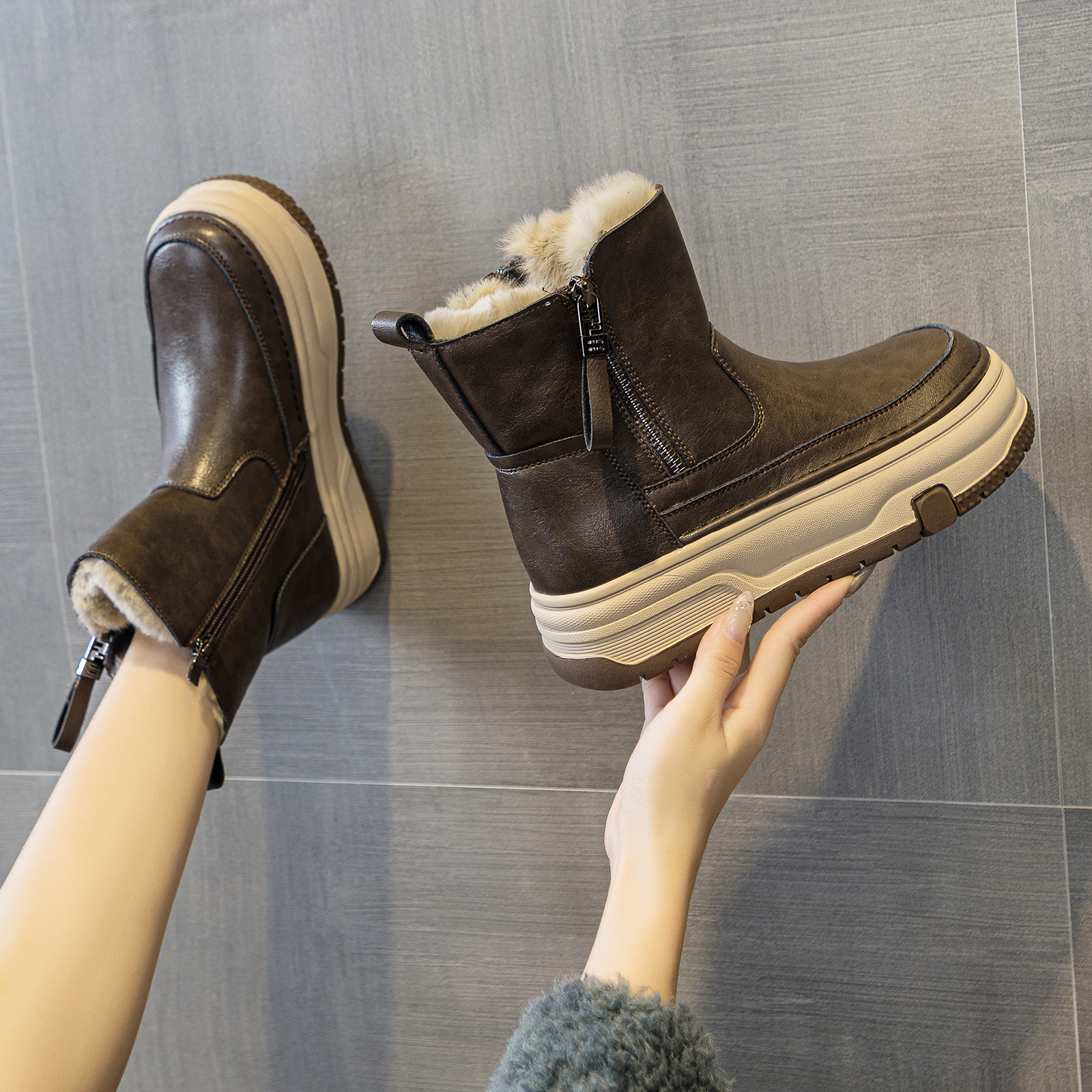 他她女孩厚底雪地靴女2025新款冬季加绒保暖棉鞋防水防滑面包鞋真