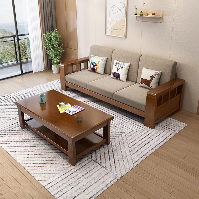 中式实木沙发客厅家具组合现代简约四人三人位小户型实木布艺沙发