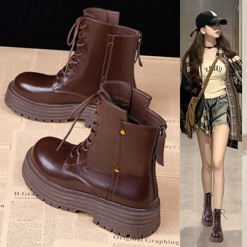 真皮马丁靴女棕色靴子短靴女款2025新款英伦风款爆款女靴冬季冬天