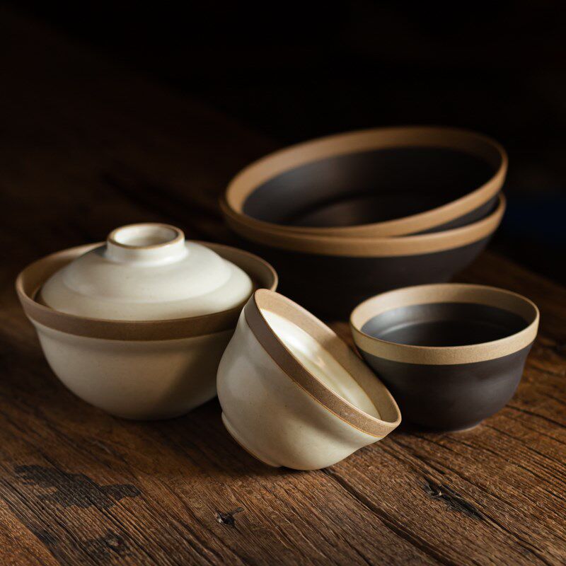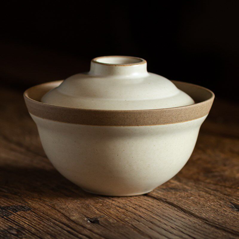 精选素火简约粗陶盔帽碗复古白哑光黑米饭碗早餐碗蒸碗面碗汤碗沙