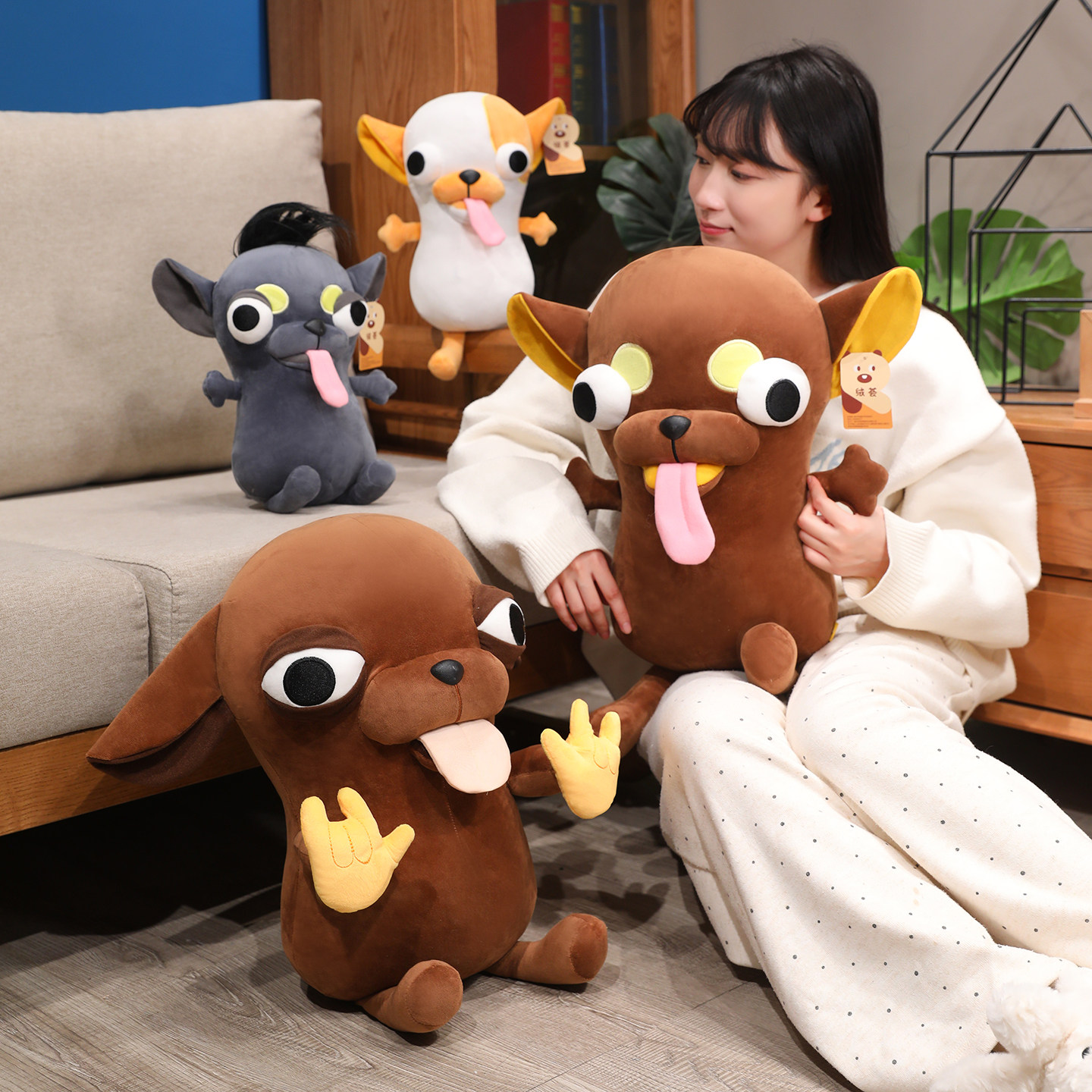 吉娃娃大号玩偶小狗公仔搞怪娃娃chihuahua毛绒玩具抱枕生日礼物