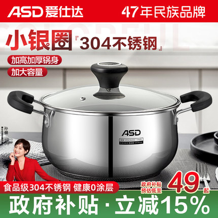 爱仕达汤锅304不锈钢加厚家用蒸锅大炖锅煮粥泡面锅双耳电磁炉用