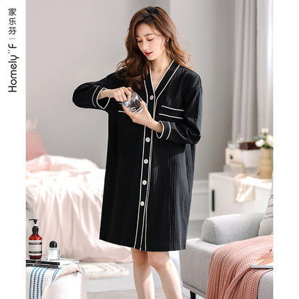 家乐芬睡裙女士睡衣裙春秋纯棉春夏季大码衬衫开衫衬衣长款高级感