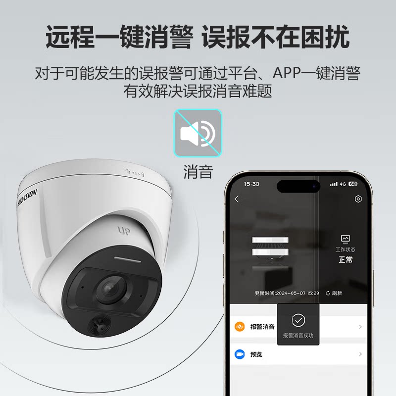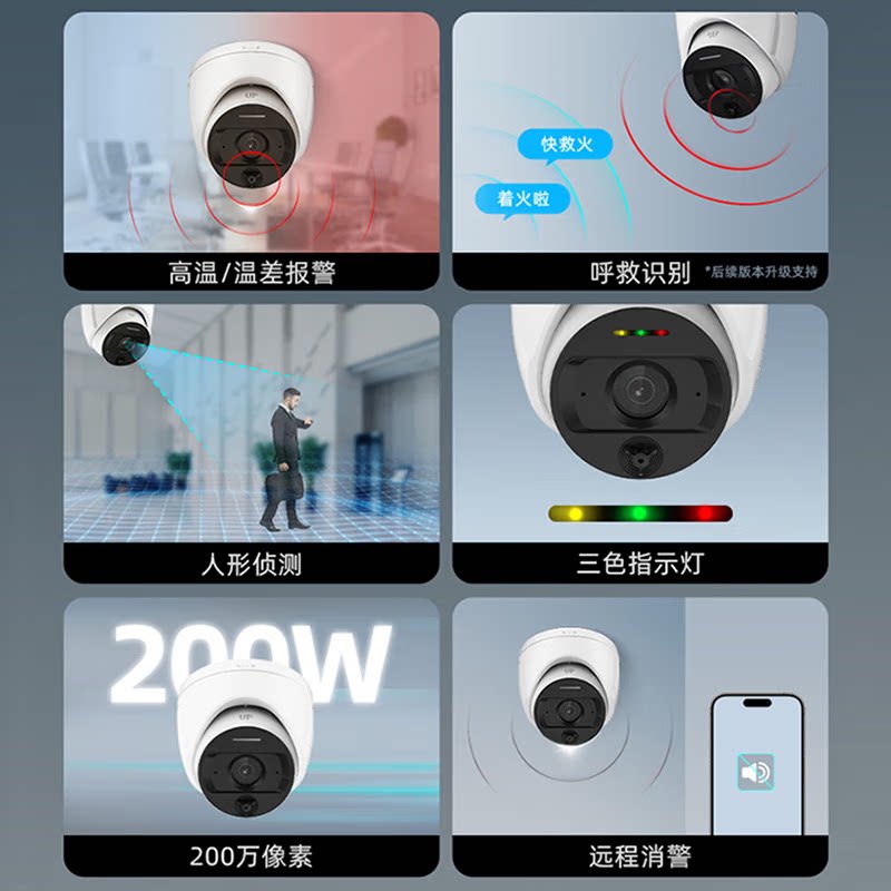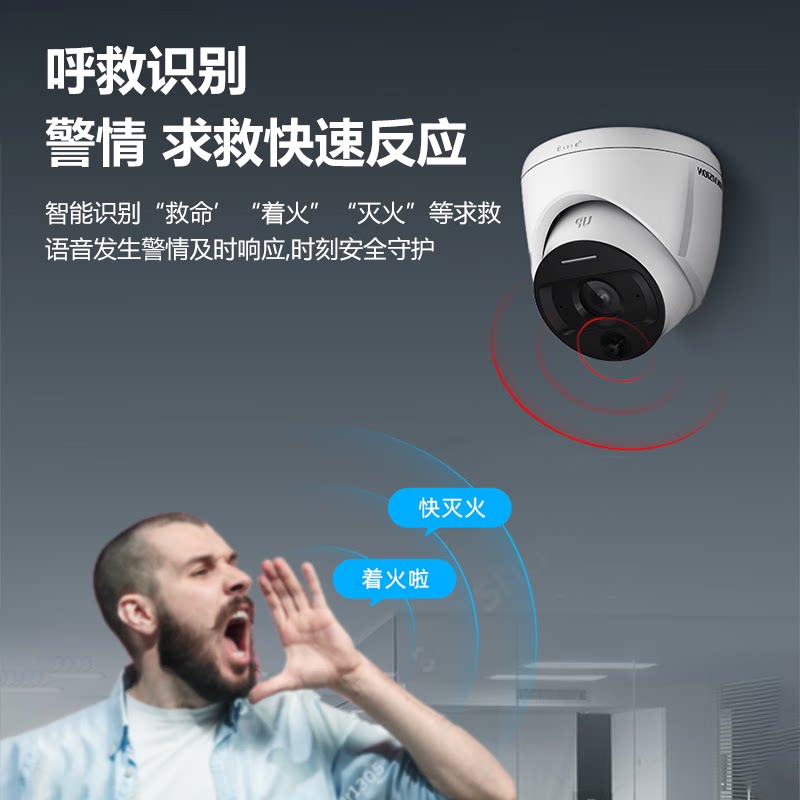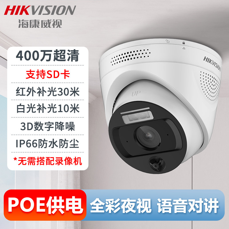 海康威视监控摄影头200/400万POE全彩半球录音摄像头家用摄像机