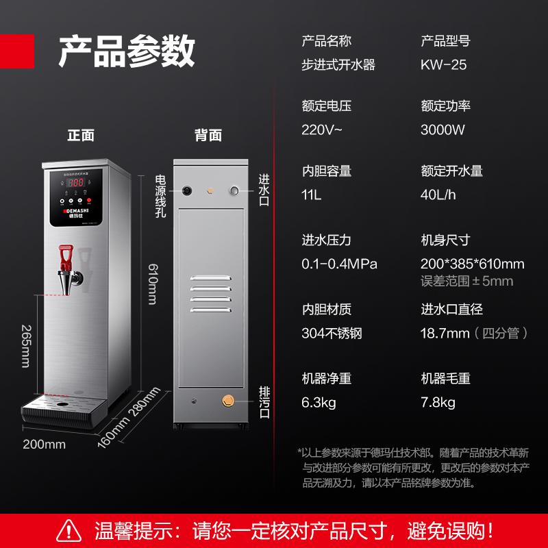 德玛仕步进式开水器商用开水机奶茶店专用烧水器电热热水器kw-25