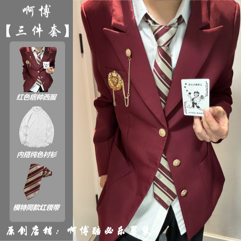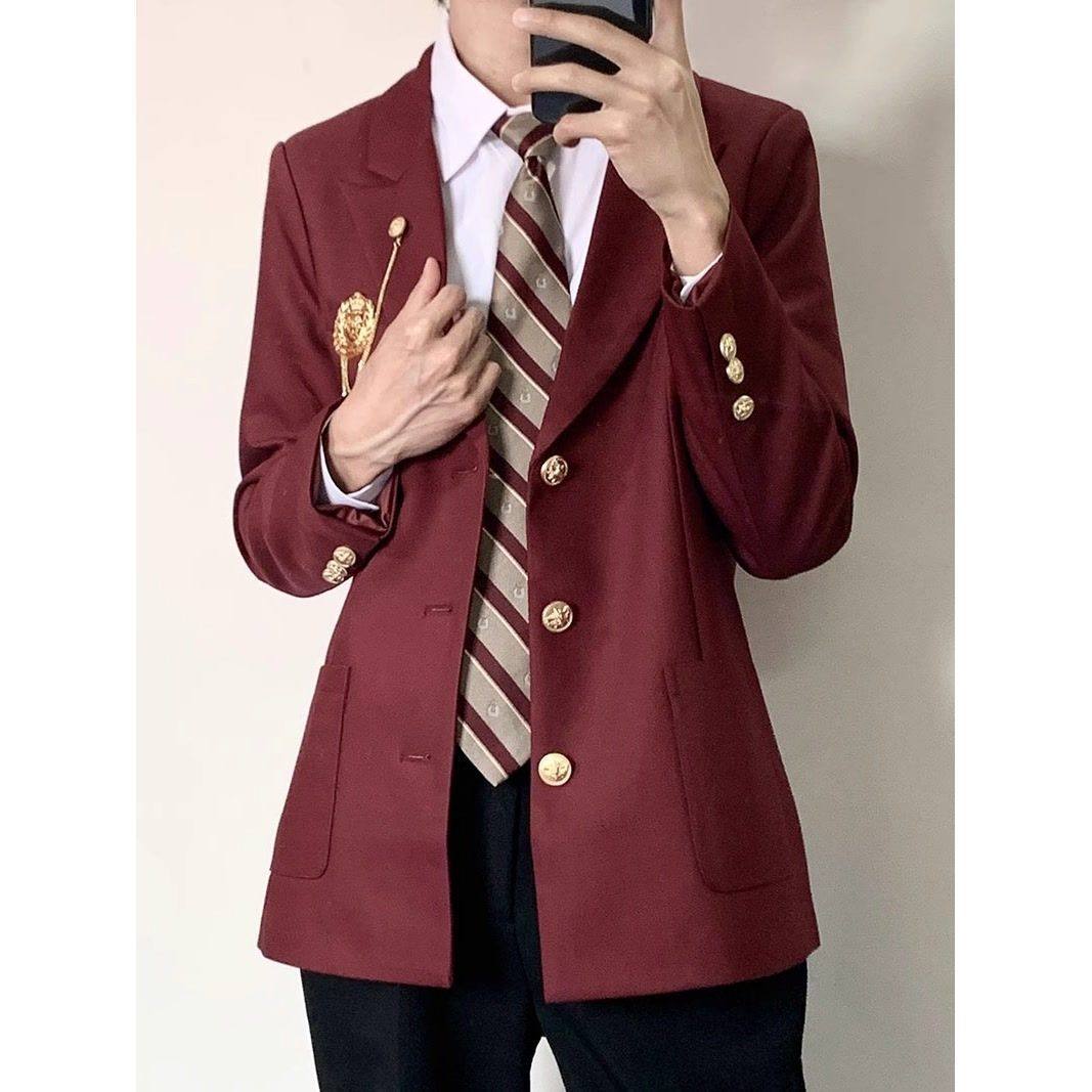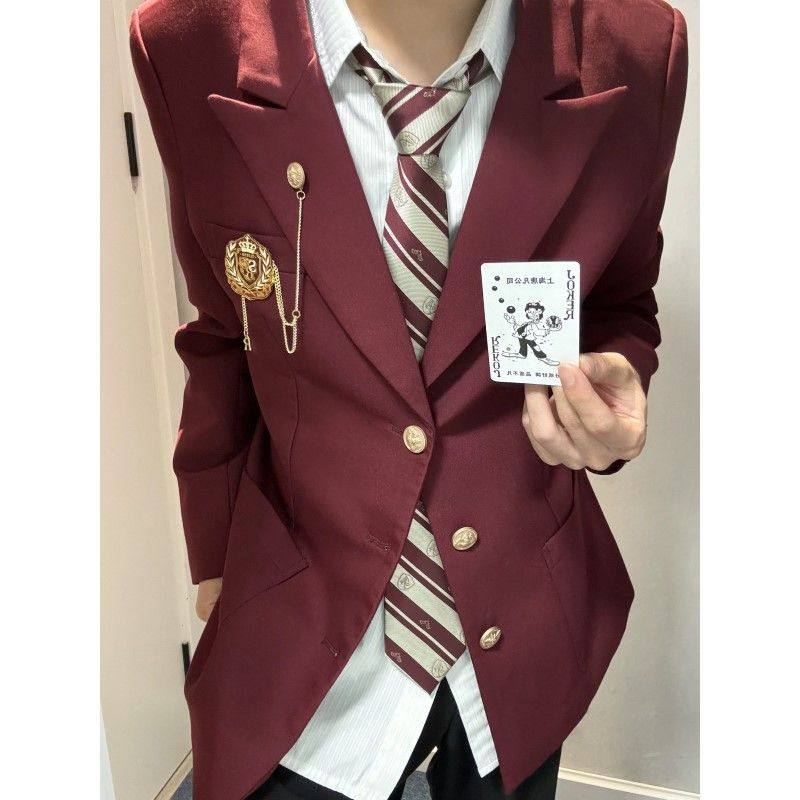 日系学院风男生dk制服西装外套jk校供感红色西服学生痞帅班服套装