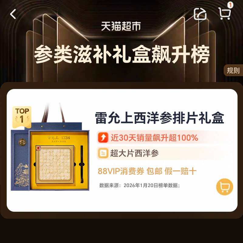 【年货礼盒】雷允上西洋参礼盒2-3cm大排片参味浓郁送长辈送父母