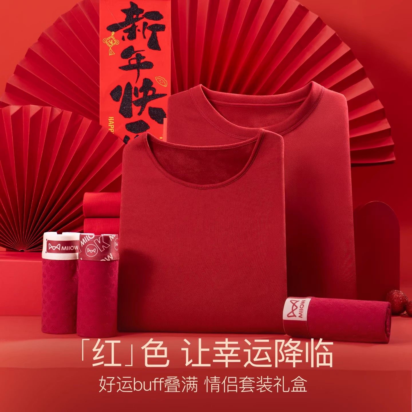 猫人本命年保暖内衣套装女加绒2026马年男士红色秋衣秋裤红内衣