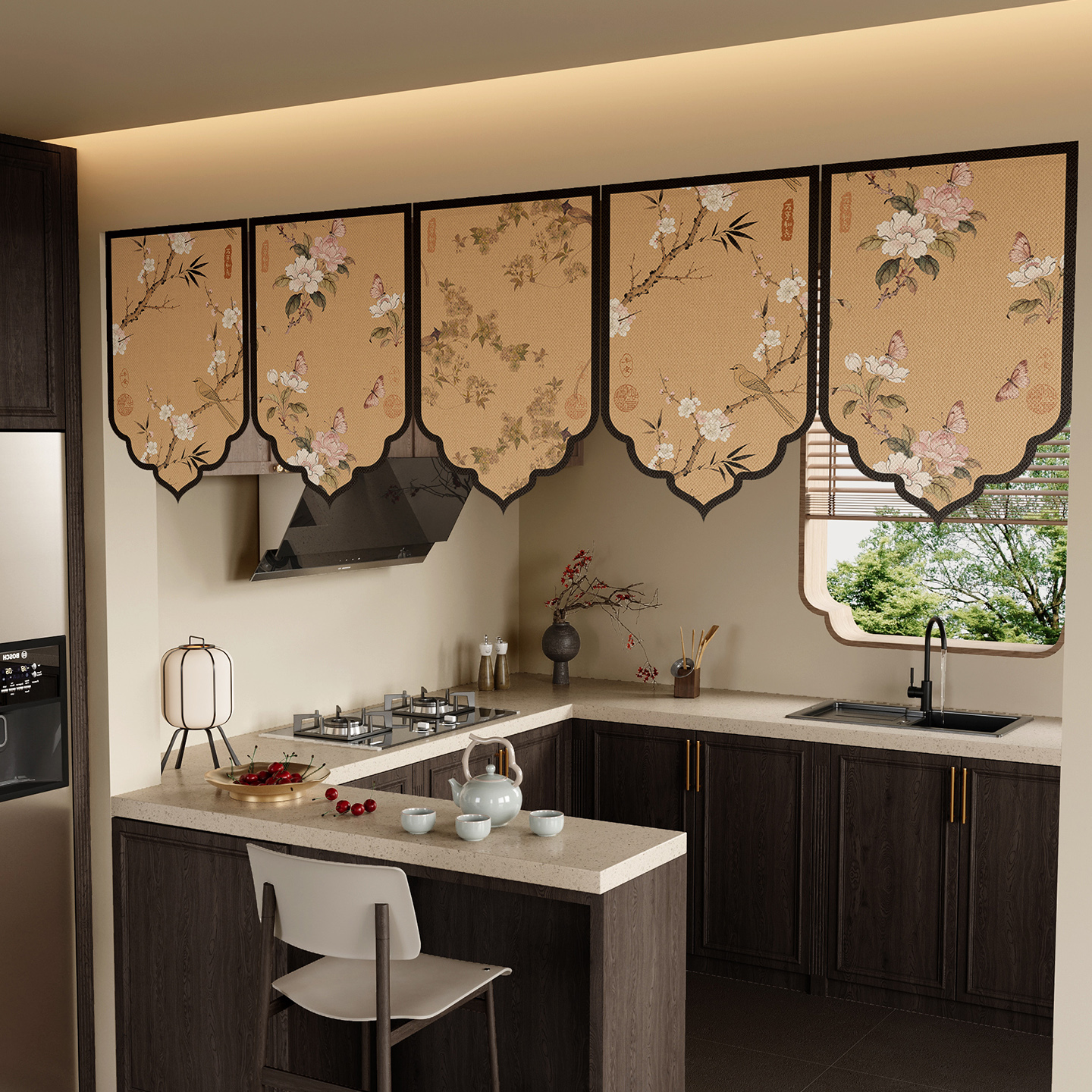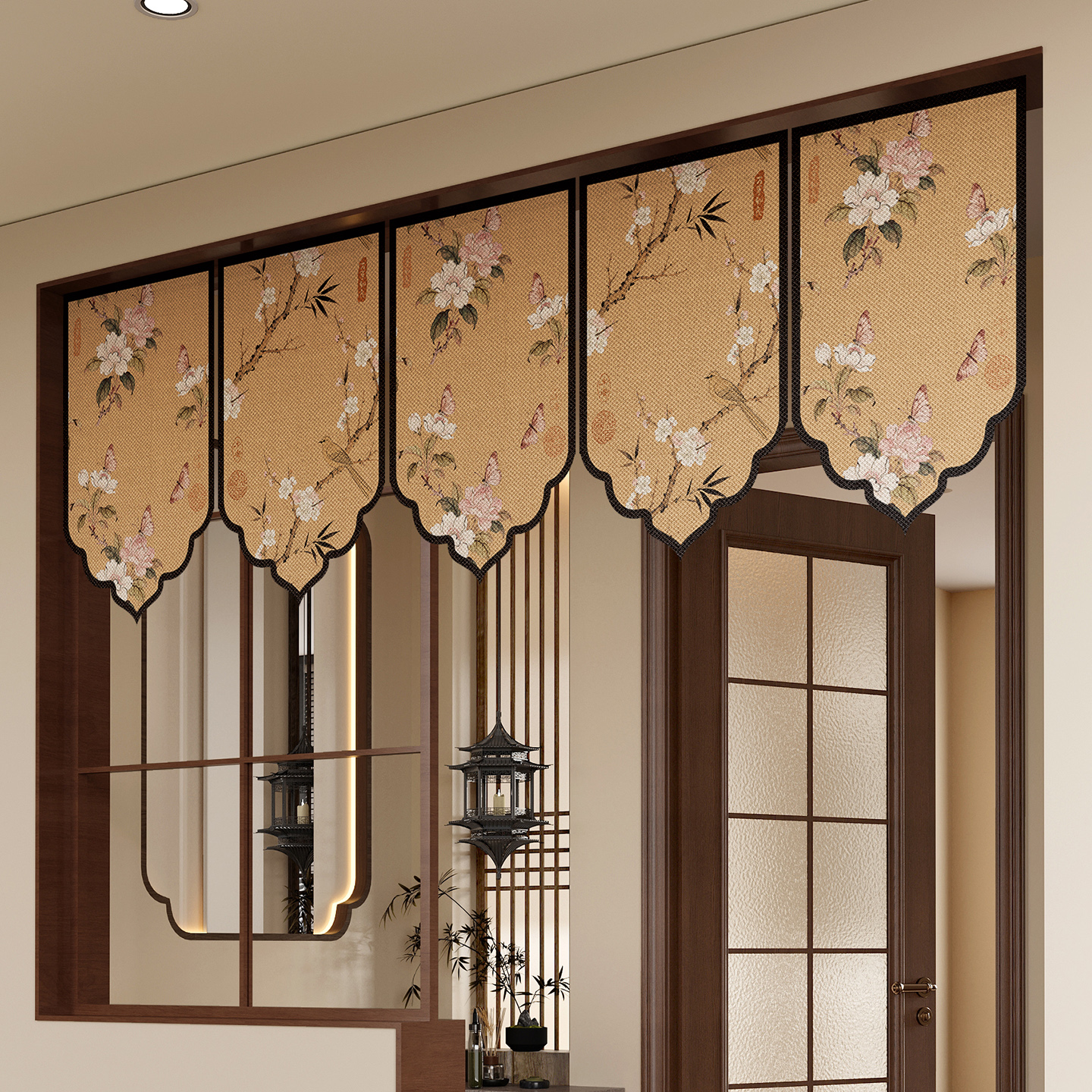 新中式门帘吊旗异形卧室客厅装饰遮挡帘隔断帘门横门头挂布短半帘