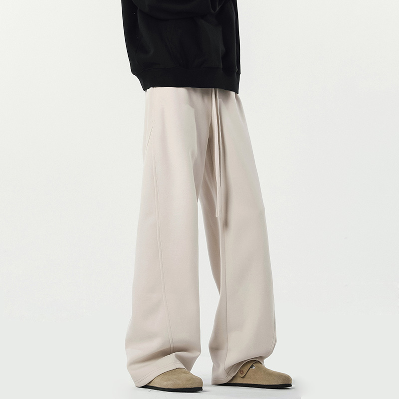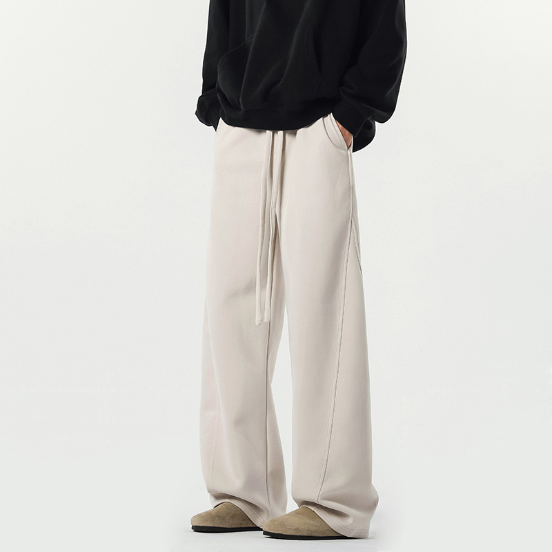 V37重磅灰色运动卫裤男秋美式高街阔腿弯刀裤复古宽松加绒长裤子