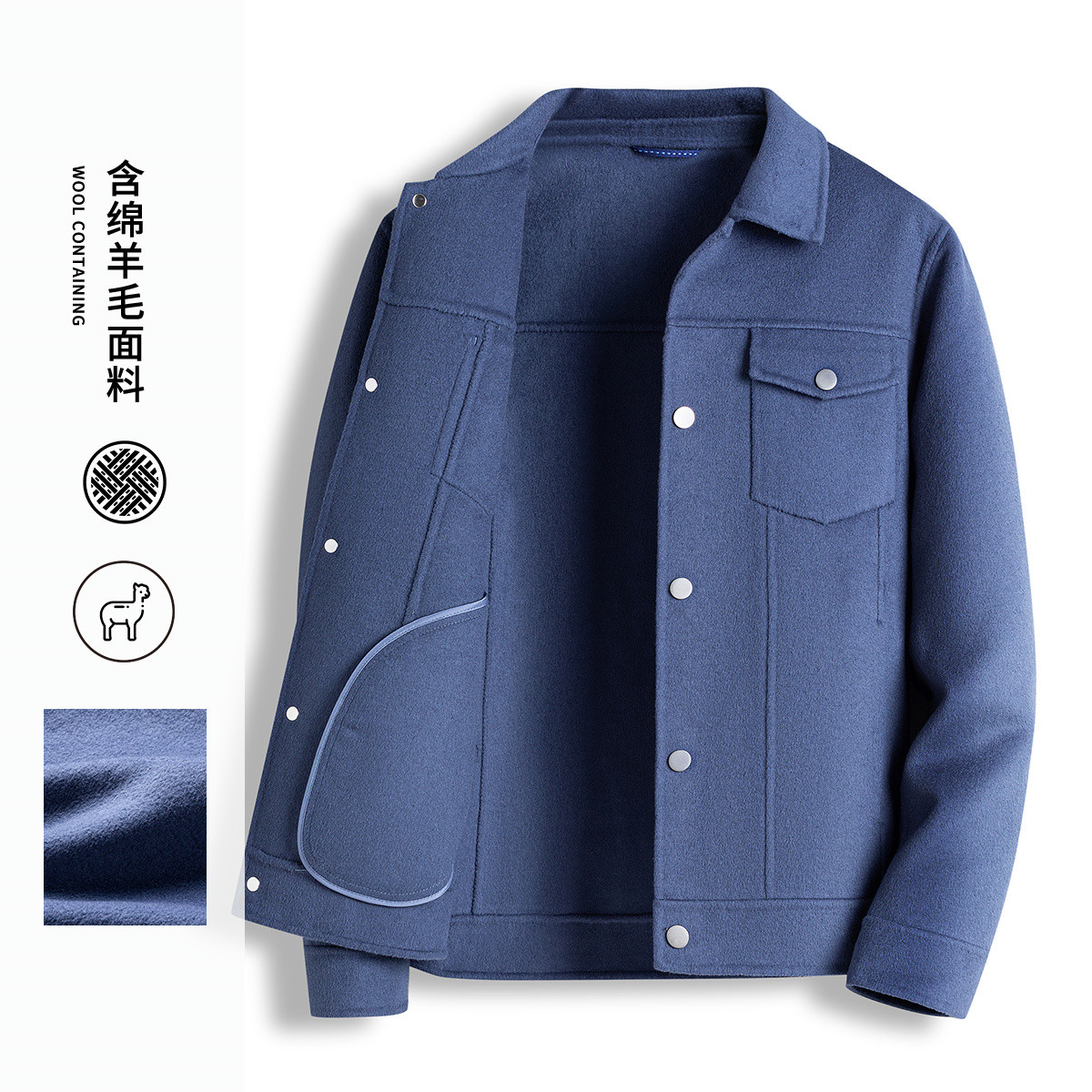 罗蒙羊毛外套男士春秋冬季保暖蓝色时尚翻领工装短款夹克毛呢大衣