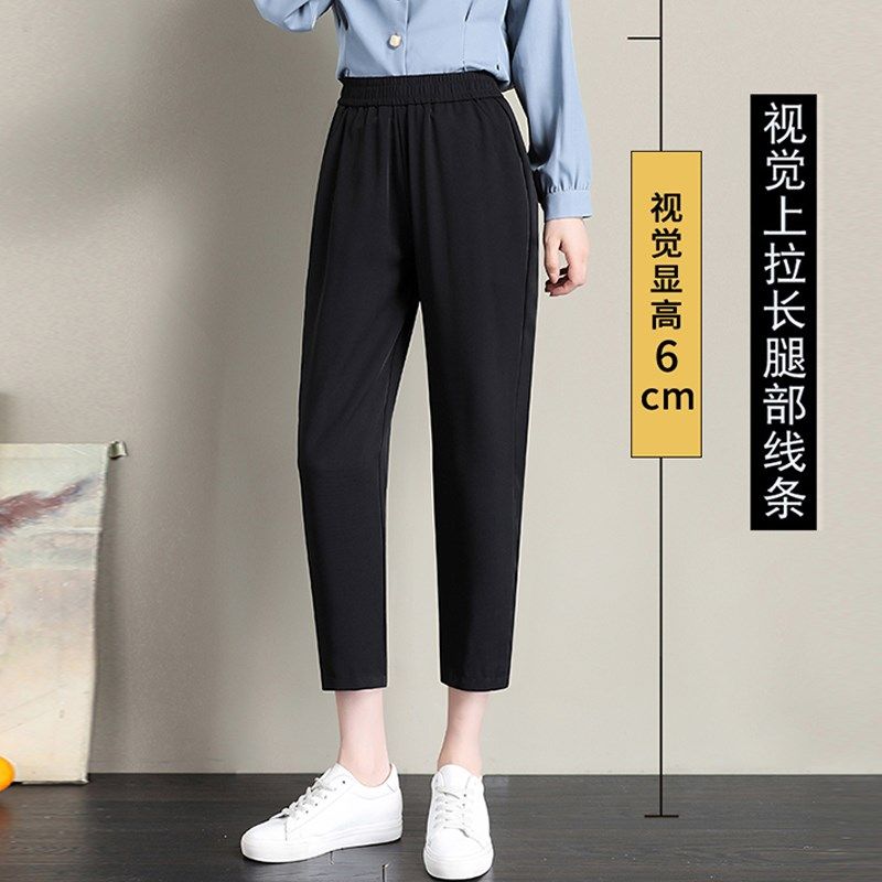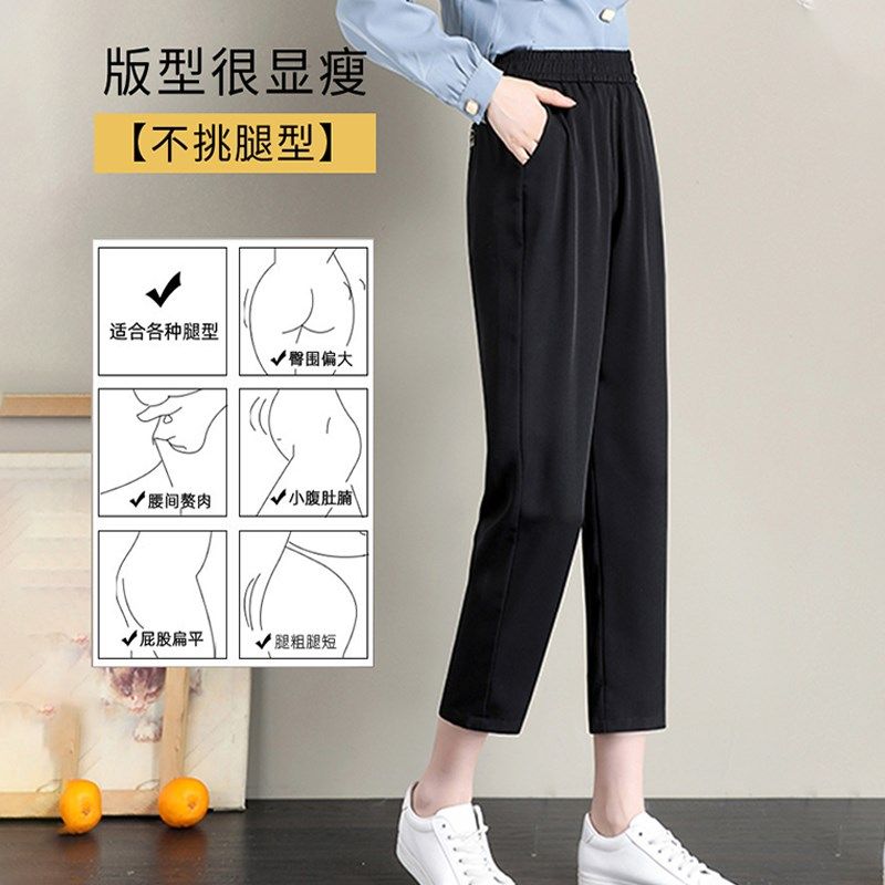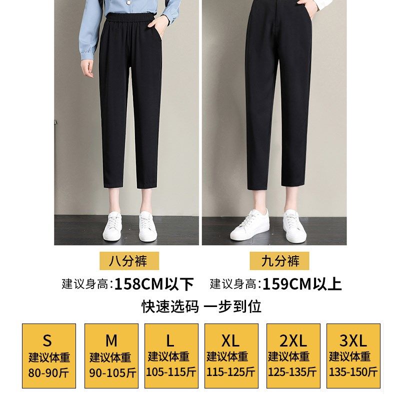 冰丝雪纺哈伦裤女夏季薄款小个子八分萝卜裤九分休闲直筒烟管西裤