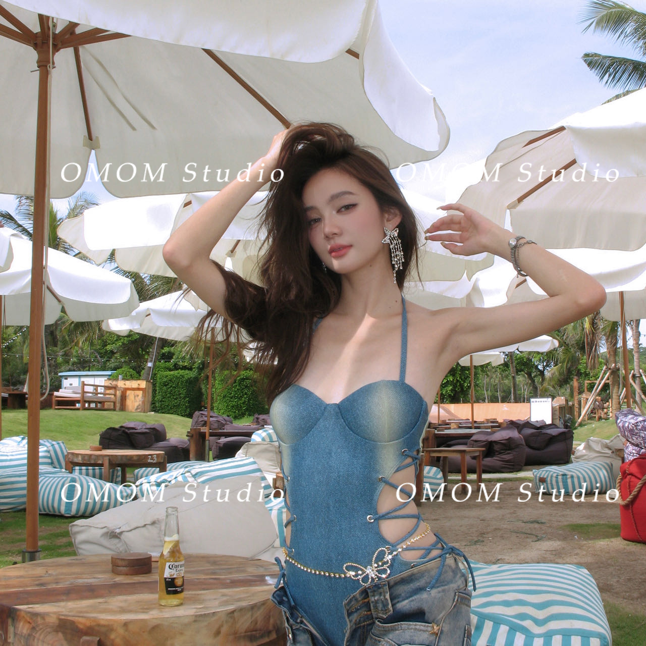OMOM2025春夏新款连体泳衣女钢托聚拢显瘦遮肚温泉度假泳装