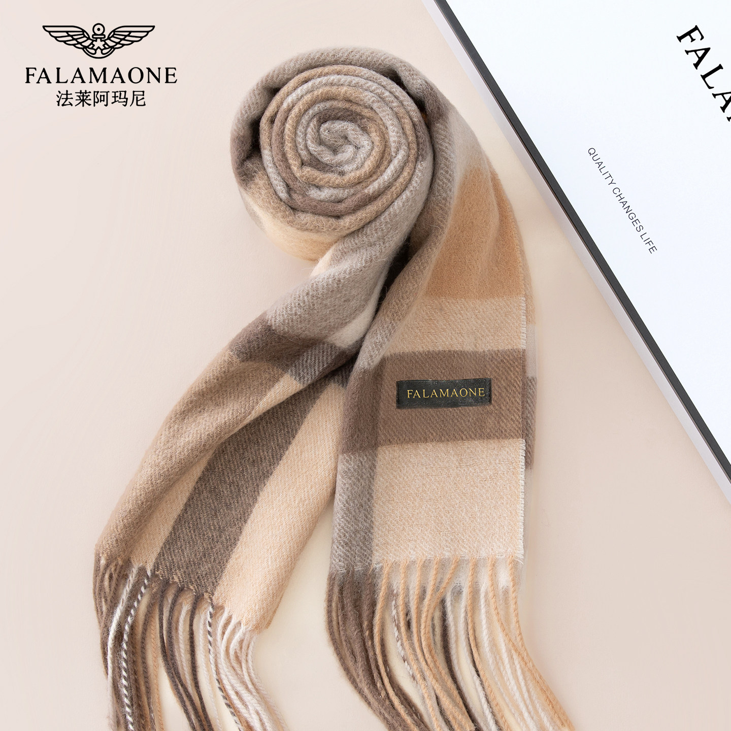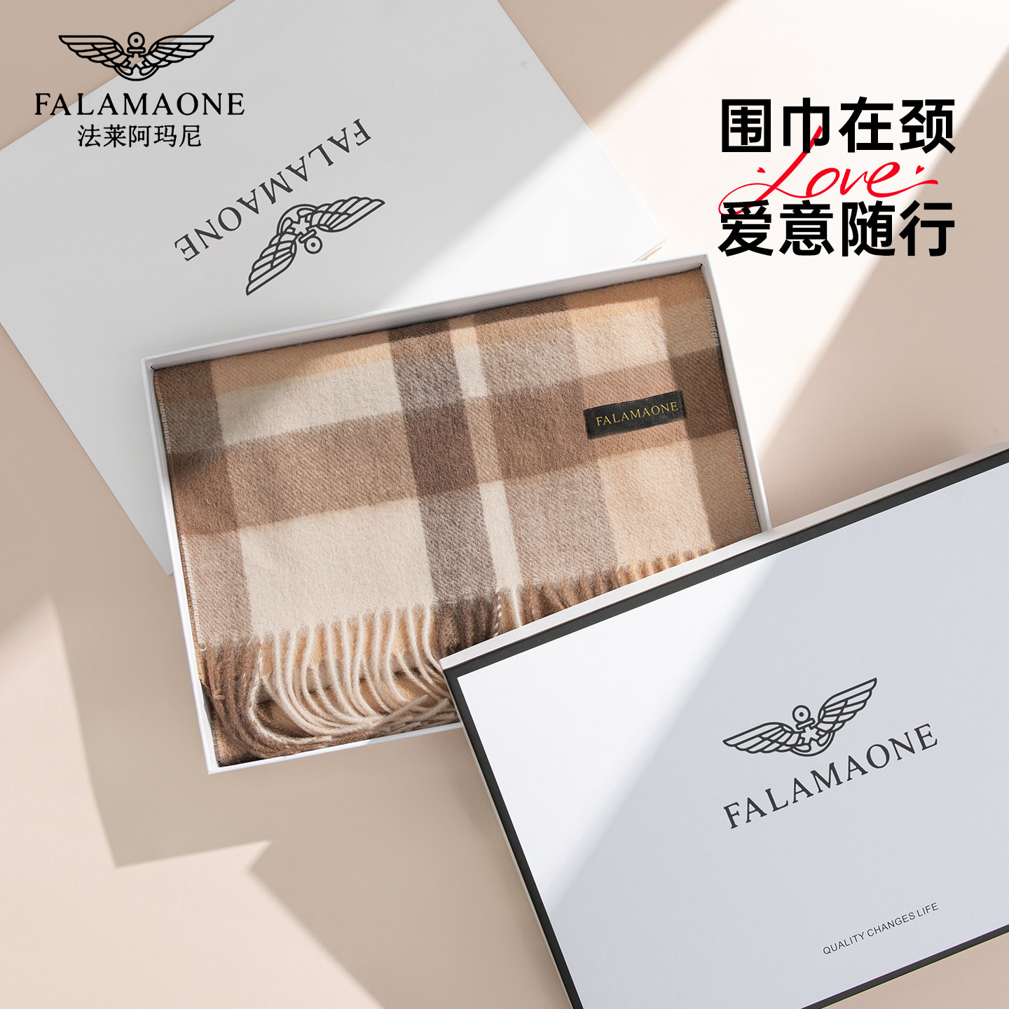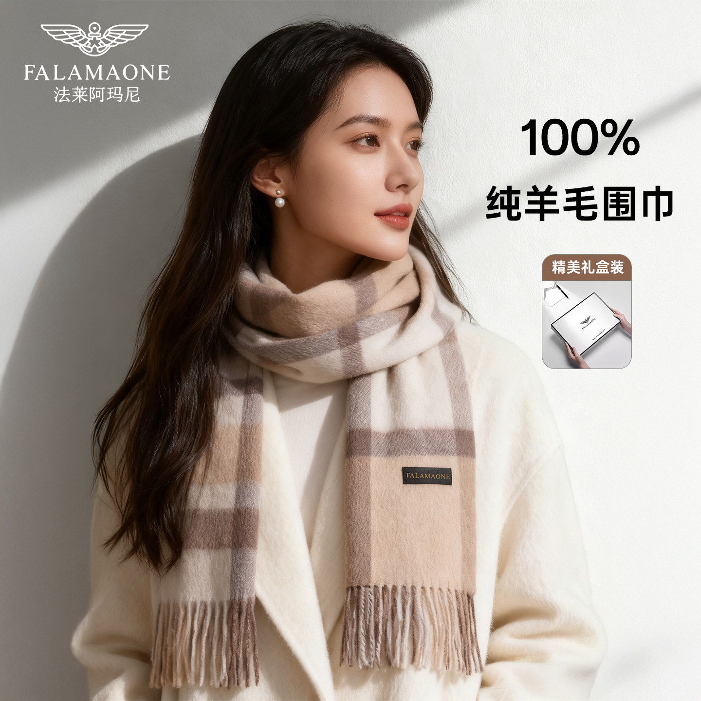 法莱阿玛尼轻奢围巾女秋冬季高级感2025新款100%羊毛女生礼物