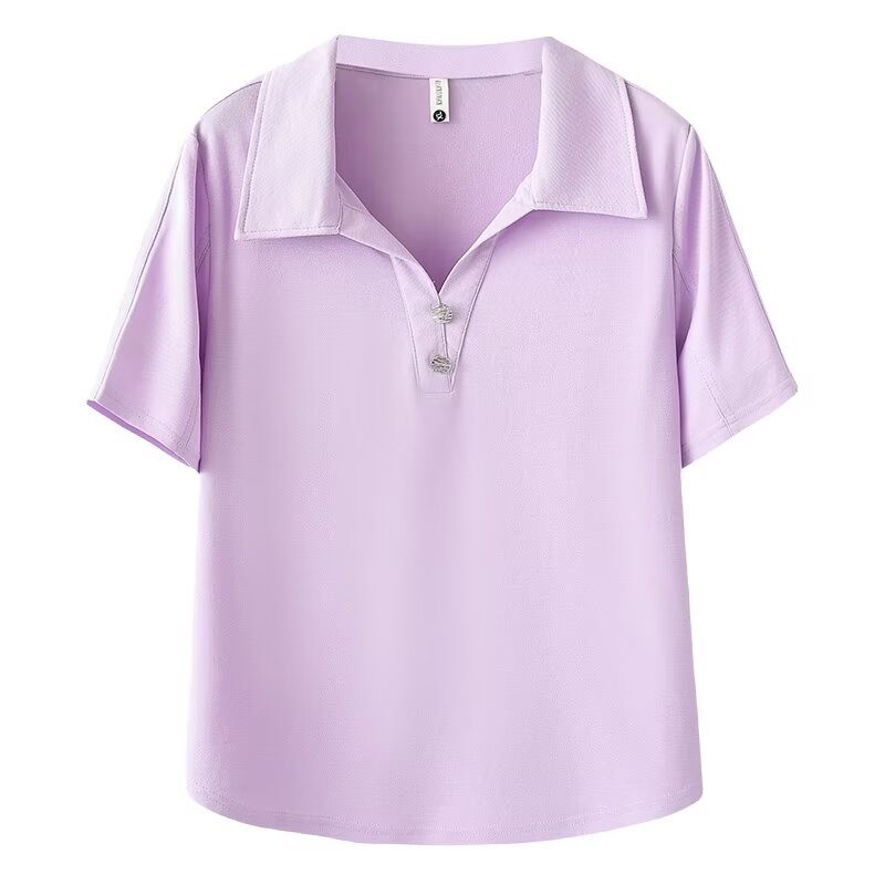 POLO领短袖T恤女夏季2025新款大码女装胖mm宽松显瘦弧形遮肚上衣