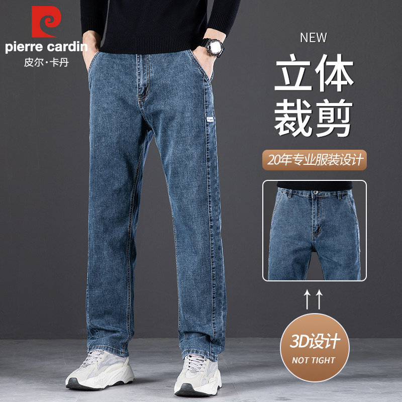 皮尔卡丹高端牛仔裤男士秋季直筒宽松休闲百搭弹力中年大码长裤子