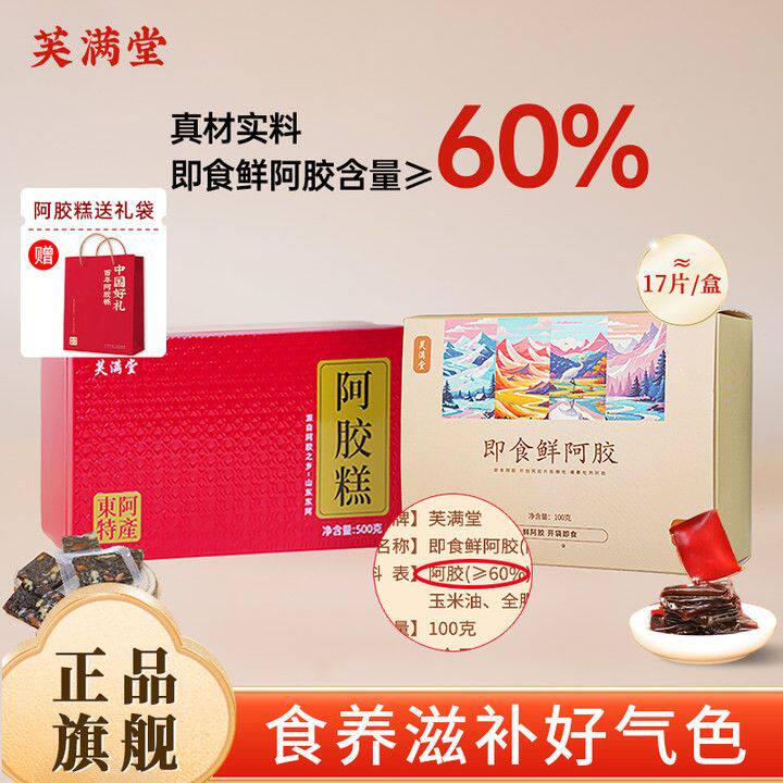 芙满堂正品高含量阿胶糕铁礼盒装女士手工即食黑芝麻红枣枸杞核桃