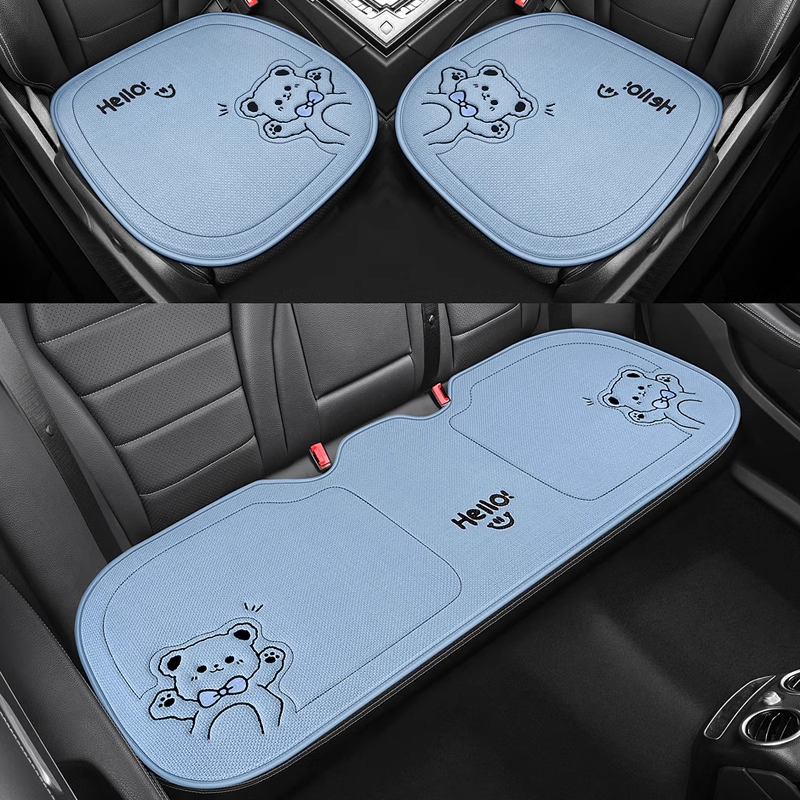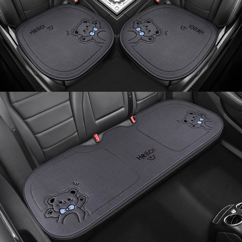 汽车夏季坐垫亚麻卡通夏季透气可爱三件套四季通用后排座垫座套