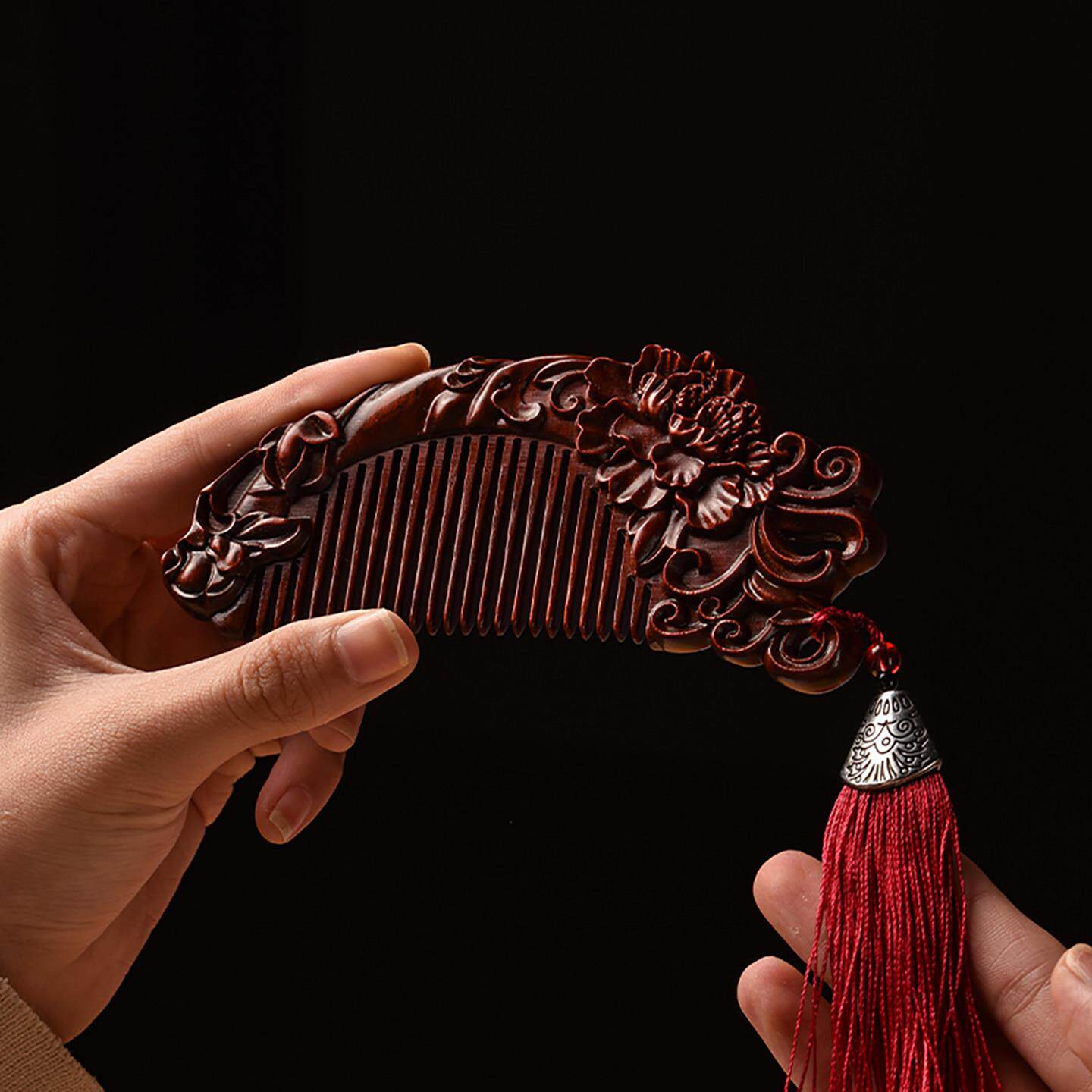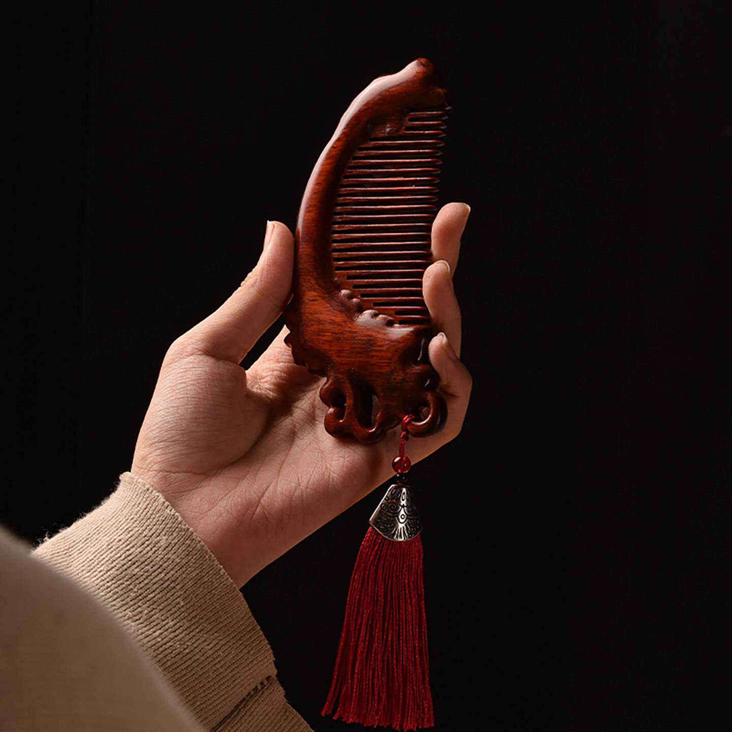 犀角紫檀木梳子国风花开 富贵个人清洁护理髲梳送女友闺蜜创意礼