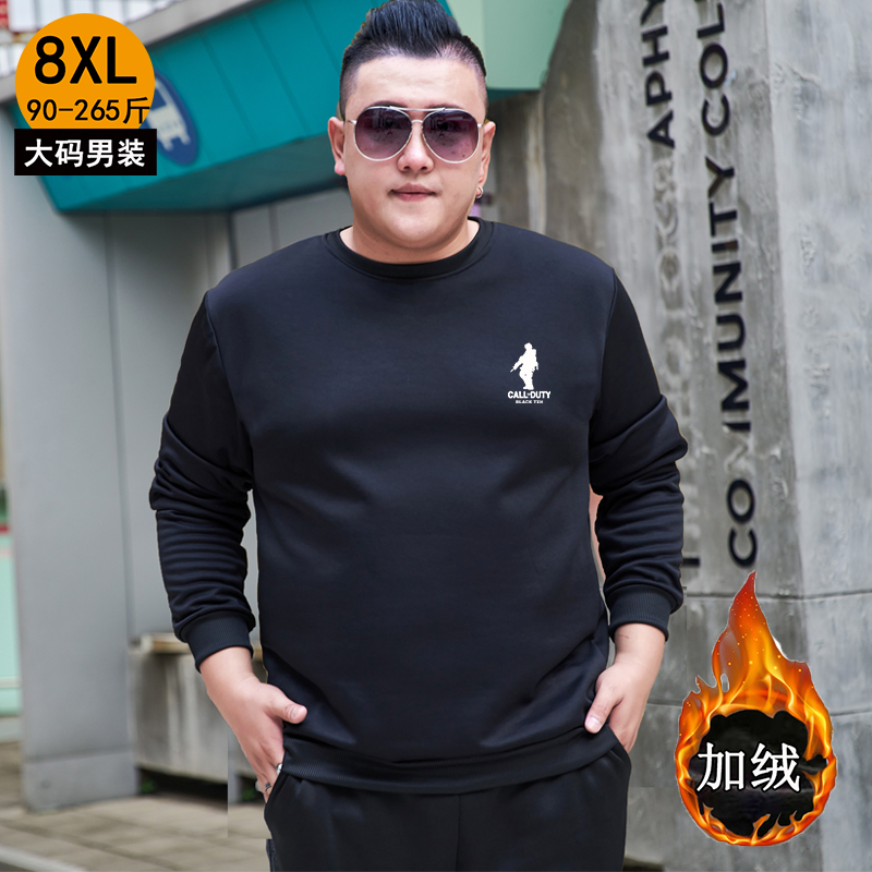 新款秋冬圆领卫衣男胖子加肥加大宽松长袖体恤加绒加厚休闲上衣潮