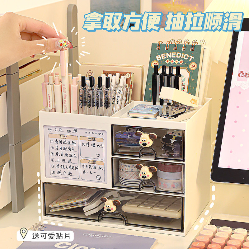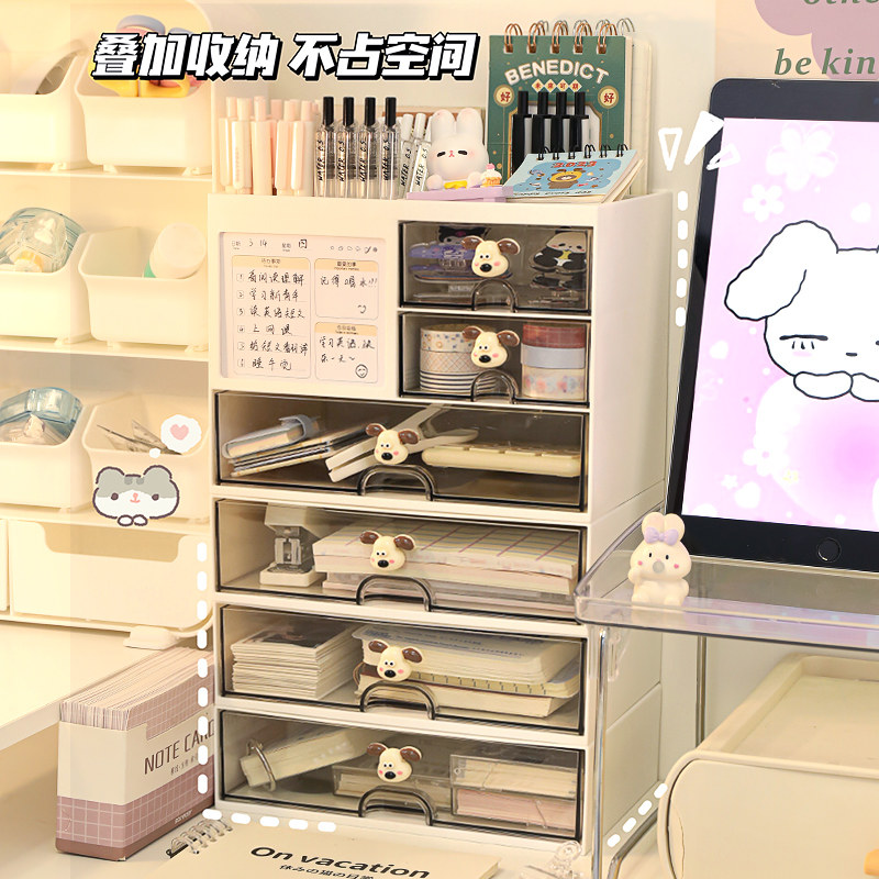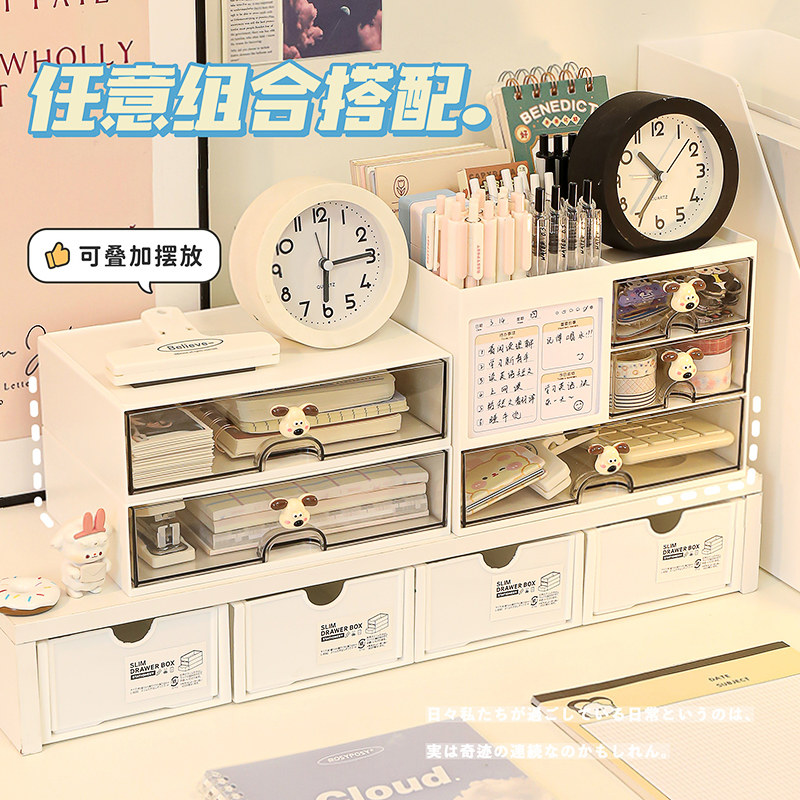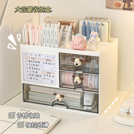 桌面收纳盒办公室杂物整理盒抽屉式文具大容量多功能亚克力笔筒