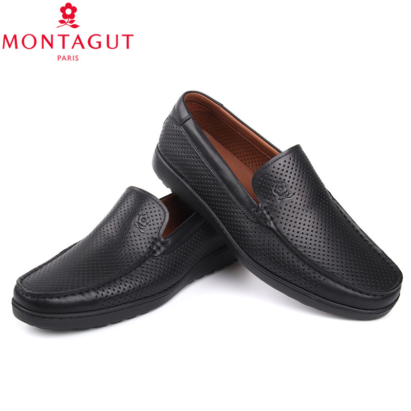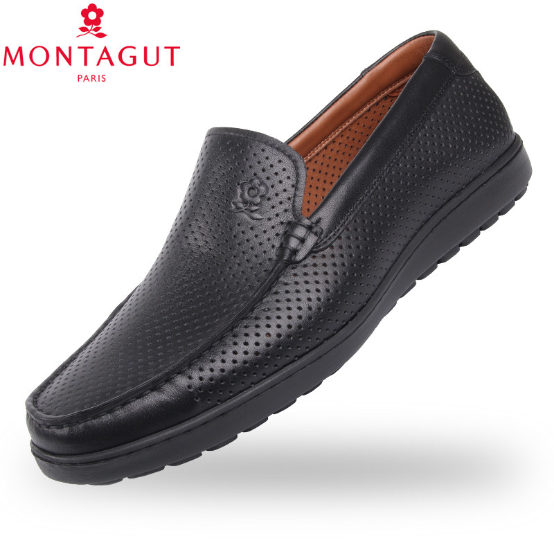 梦特娇男鞋夏季商务休闲鞋男士镂空真皮凉鞋轻便透气一脚蹬懒人鞋