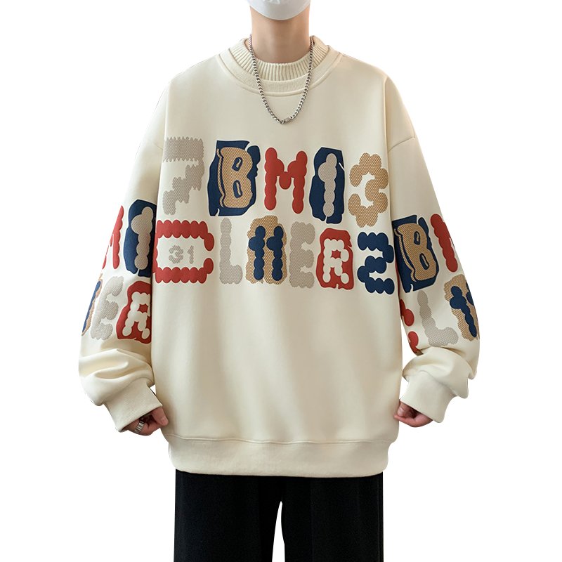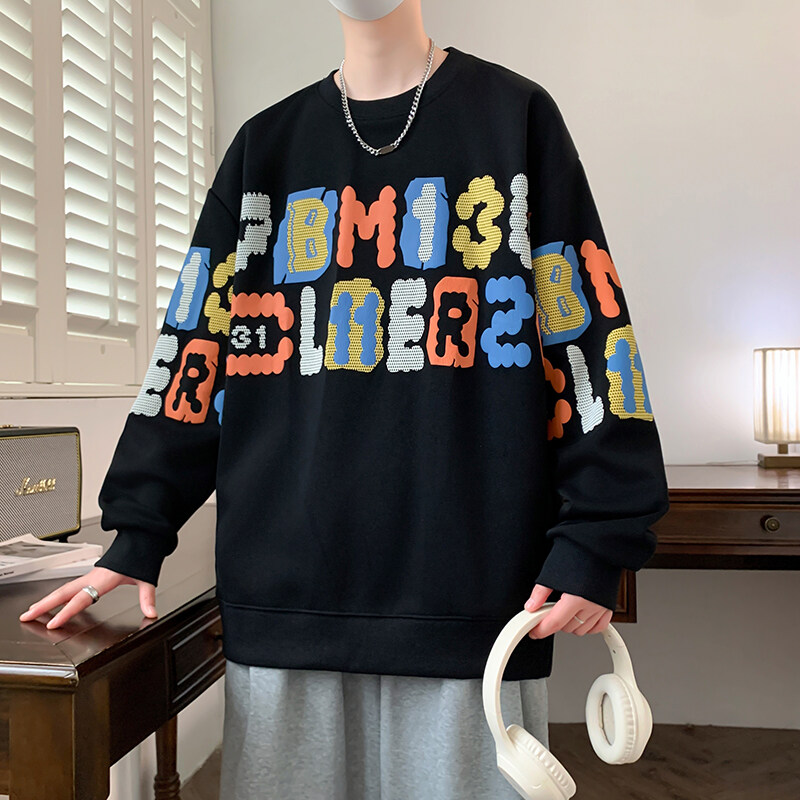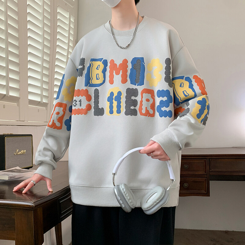 美式圆领卫衣男款2026春秋季青少年潮流宽松字母印花长袖上衣以純