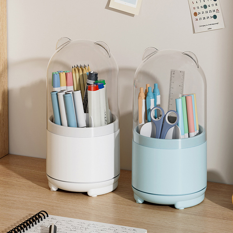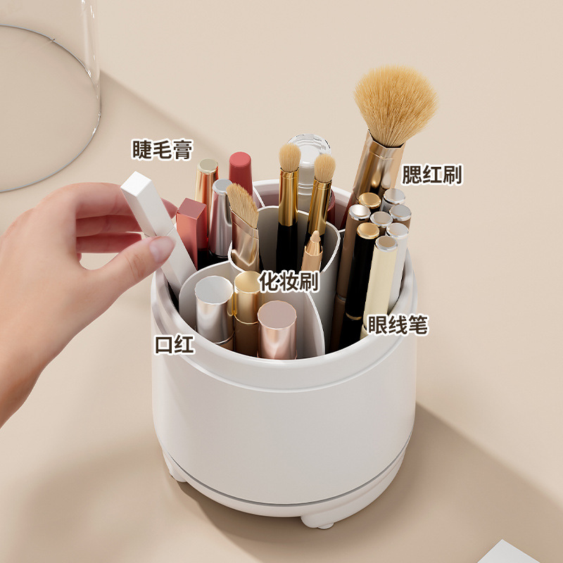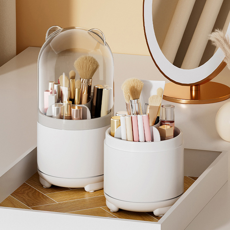 化妆品收纳盒桌面化妆刷收纳筒旋转防尘笔筒梳妆台眉笔眼影置物架